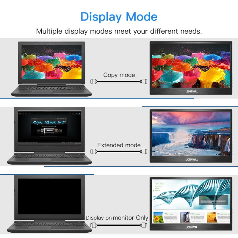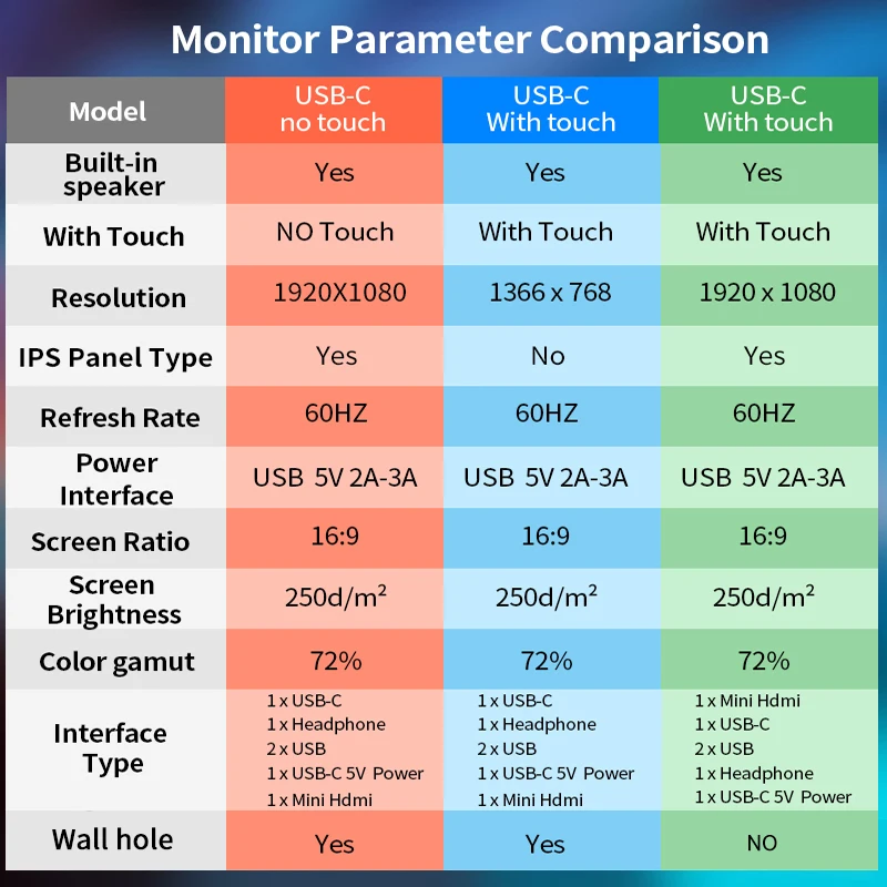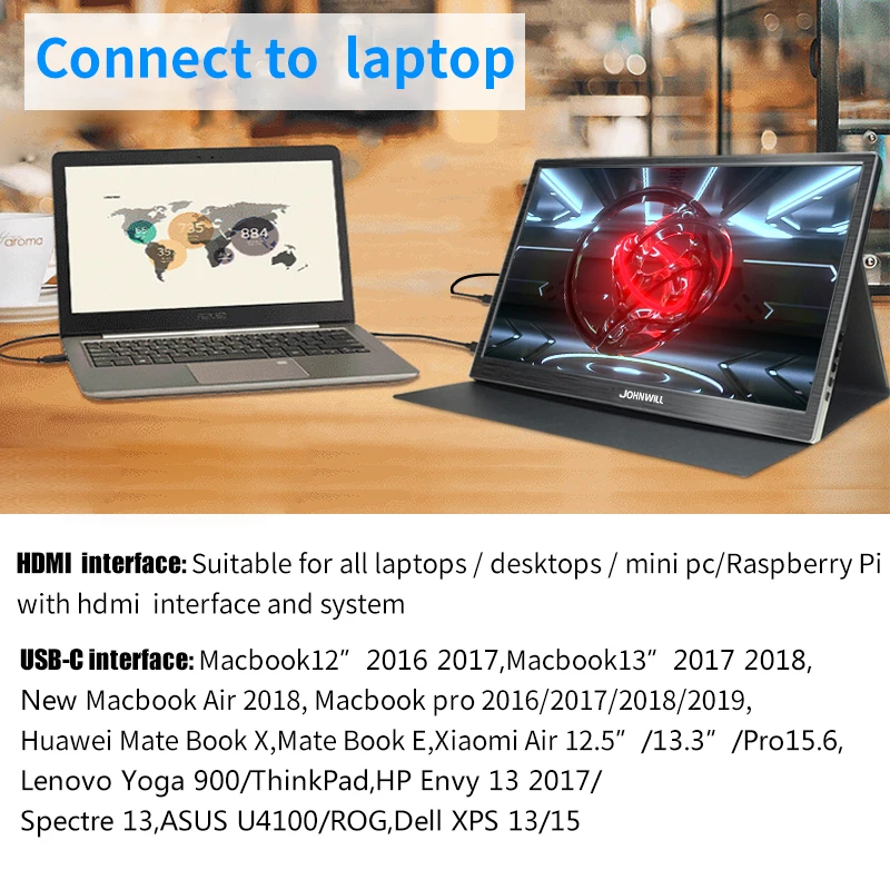 2. 15.6 inch portable monitor 1366x768 with touch【 IPS Panel】 Monitor with a 15.6" 1080P Full HD IPS panel with great 178°viewing angles