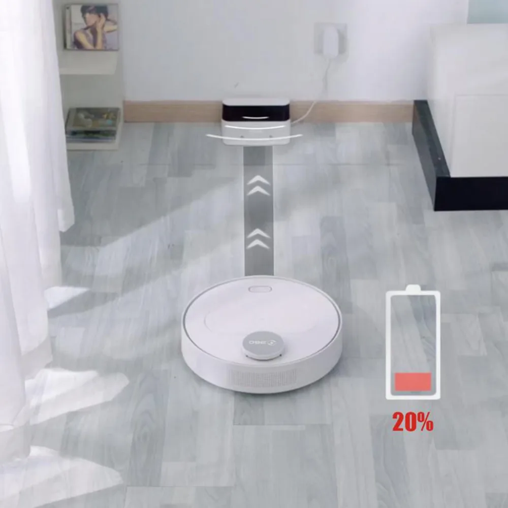 Automatically recharge and resume: recharge when power is less than 20 percent, after being fully recharged, automatically continue cleaning task without finishing.