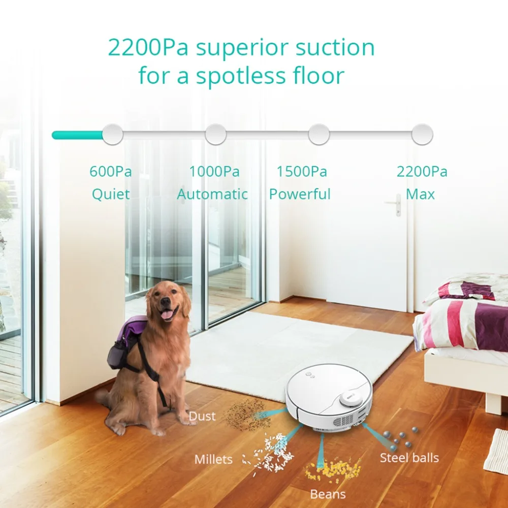 3 Cleaning Modes: Silent, automatic, Maximum, maximum 2000 Pa of suction, 2-in-1 Sweeping & Mopping.