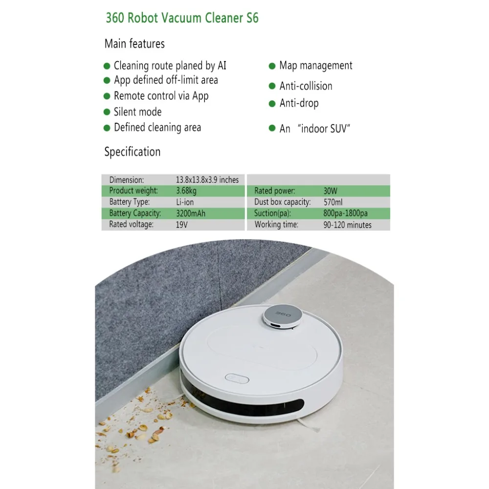 Original 360 S5 S6 S7 S7PRO S9 Robot Vacuum Cleaner Wet Dry Smart Robotic Vacuum Cleaner Sweeping Robot Strong Suction Sweeper WIFI App Remote Control for Home Automatic