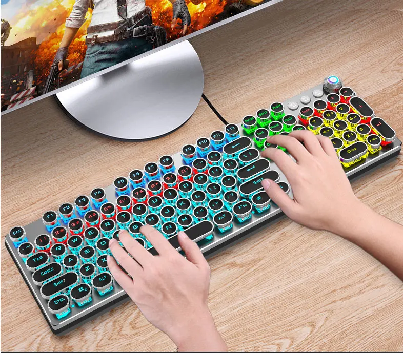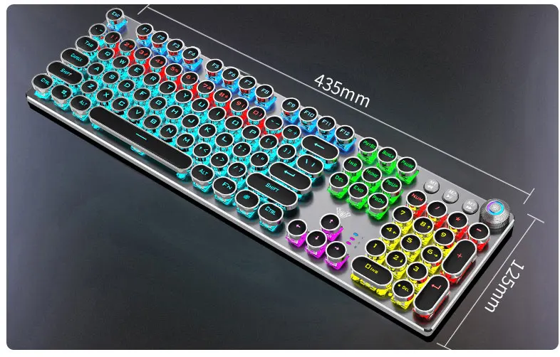 | Steampunk Gaming Mechanical Keyboard Metal Panel Round Retro Keycap Backlit Wired Computer Peripherals for Desktop Laptop |