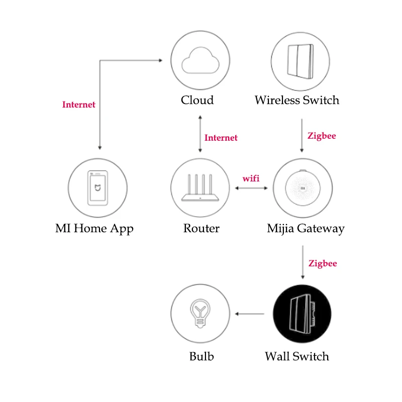 Here is a diagram about how this smart light control set works, now everything can be done just with your Xiaomi Smart Home APP!