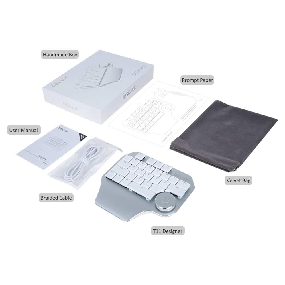 - Delux T11 Designer is a customizable keyboard makes designing a breeze, It's the perfect tool to assist any designer helping you design up to 80% faster.