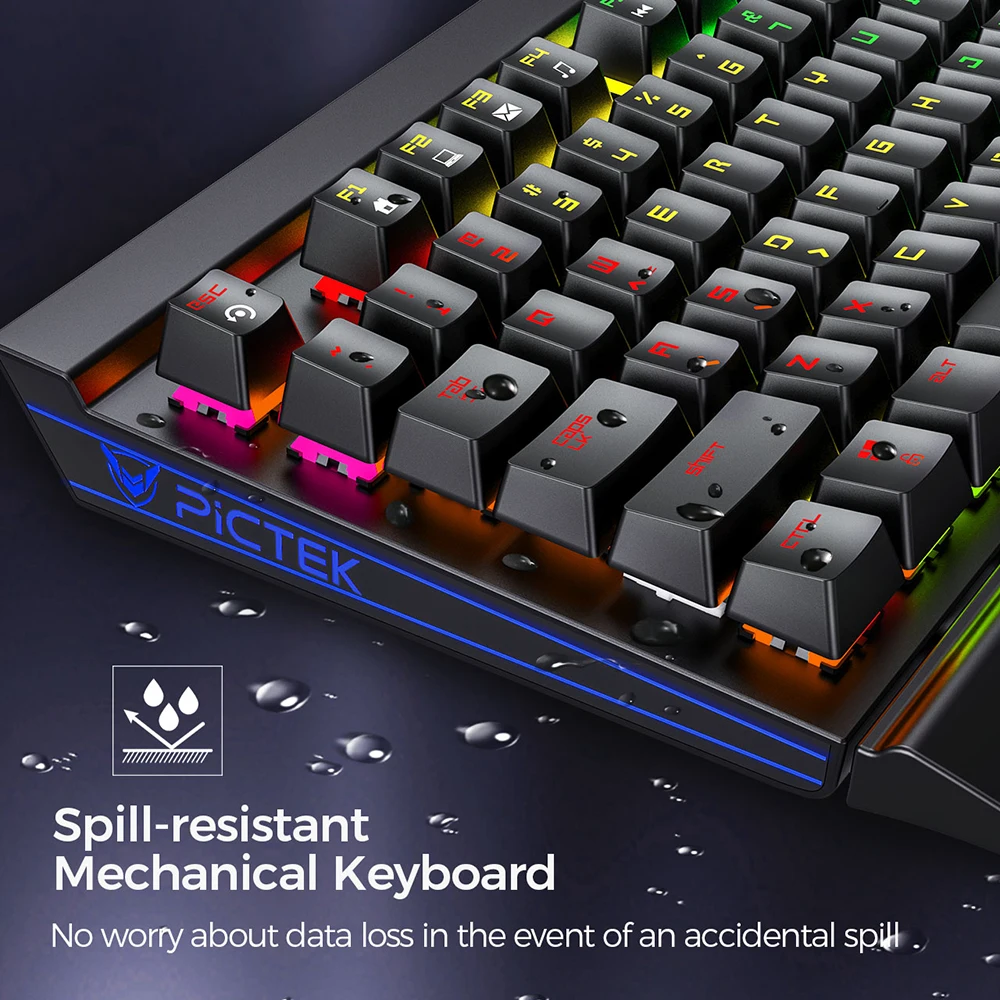 | PICTEK PC248 Gaming Mechanical Keyboards Blue Switch Wired Keyboard With Rest Wrist Anti-ghosting RGB Backlit For PC Gamer Win |