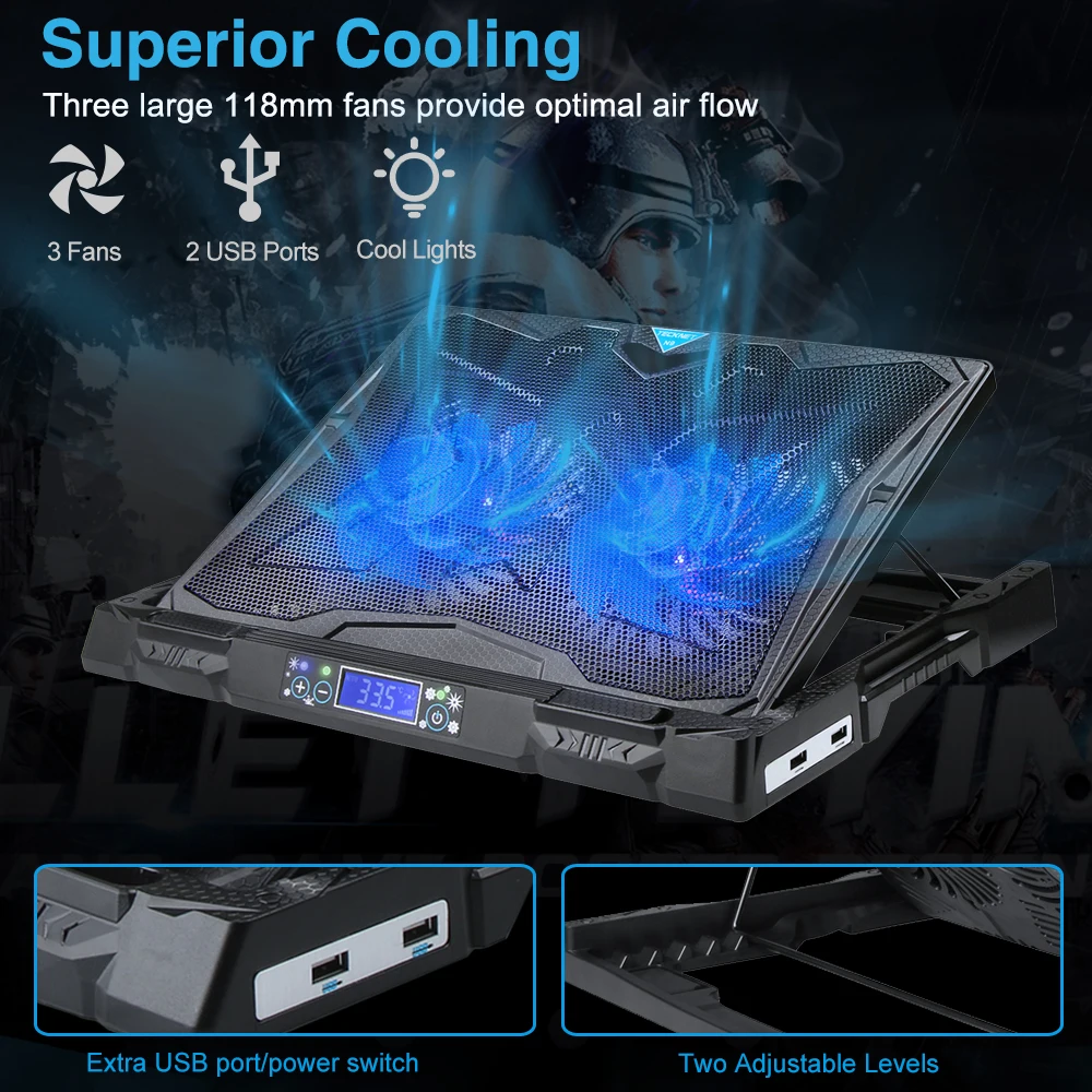 TeckNet Gaming Laptop Cooling Pad 2 Fans With LED Screen Cooler Stand Pad Cooling For 12-17 inch Laptop NoteBook MacBook Cooler
