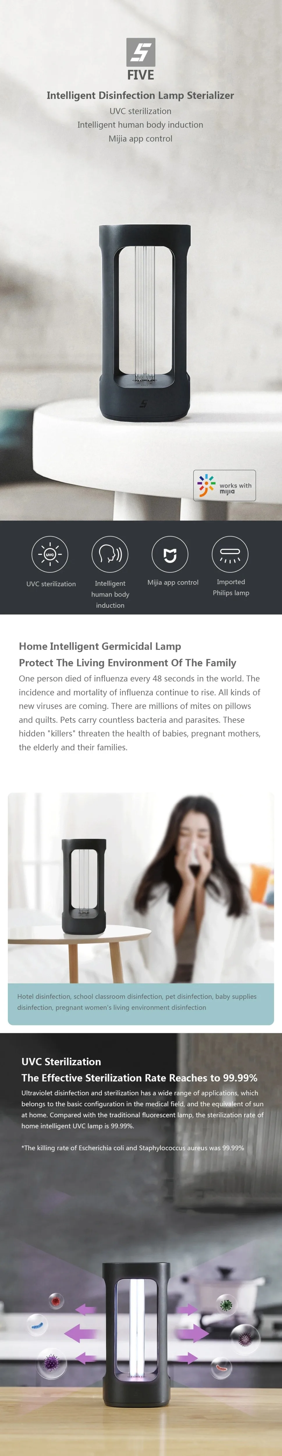 Xiaomi mijia FIVE Smart UVC Disinfection Lamp Human Body Induction UV Sterializer From Xiaomi Youpin With Mijia App Control