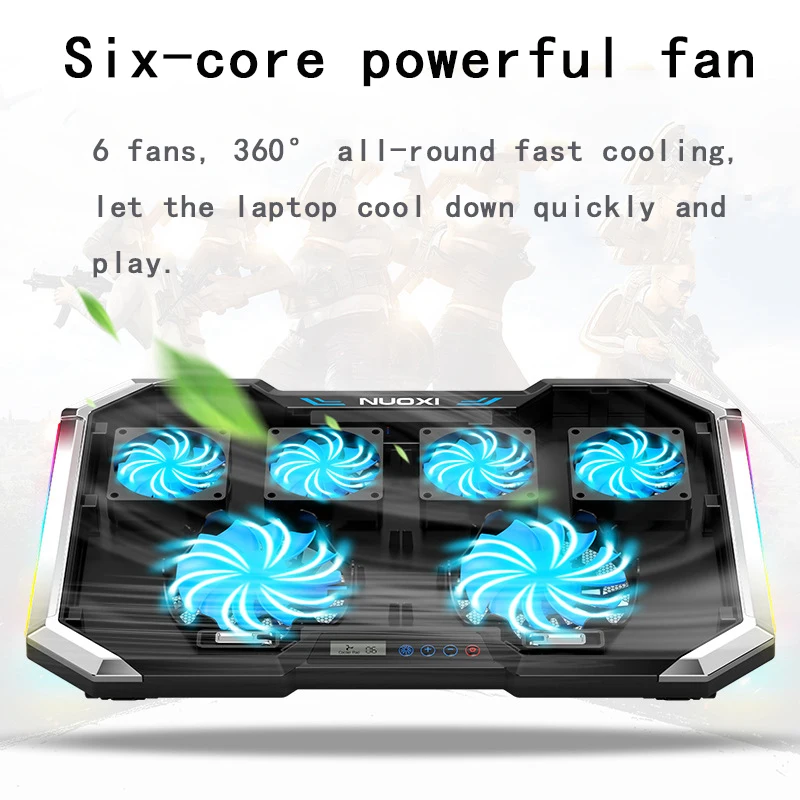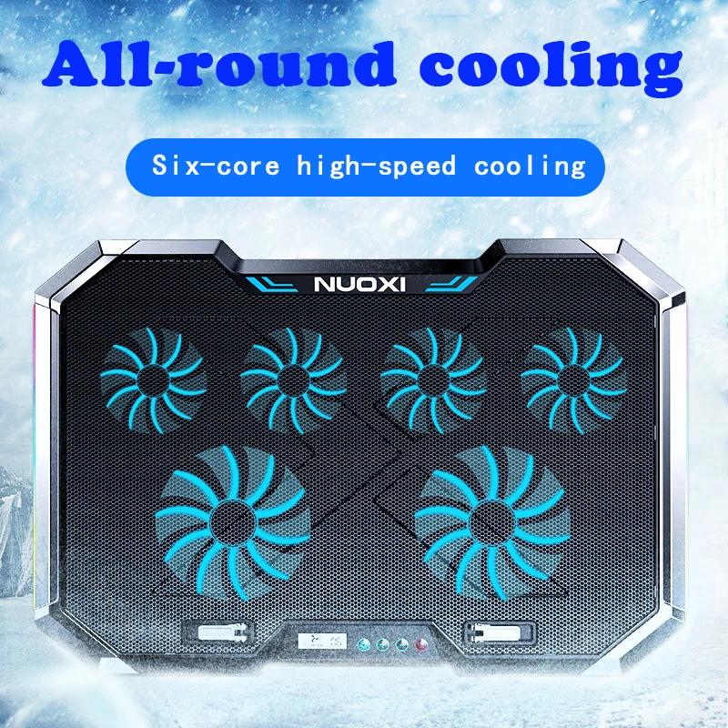 | NUOXI Gaming Laptop Cooler Six Fan Led Screen Two USB Port 1500RPM RGB Laptop Cooling Pad Notebook Stand for Laptop 12-17 inch |