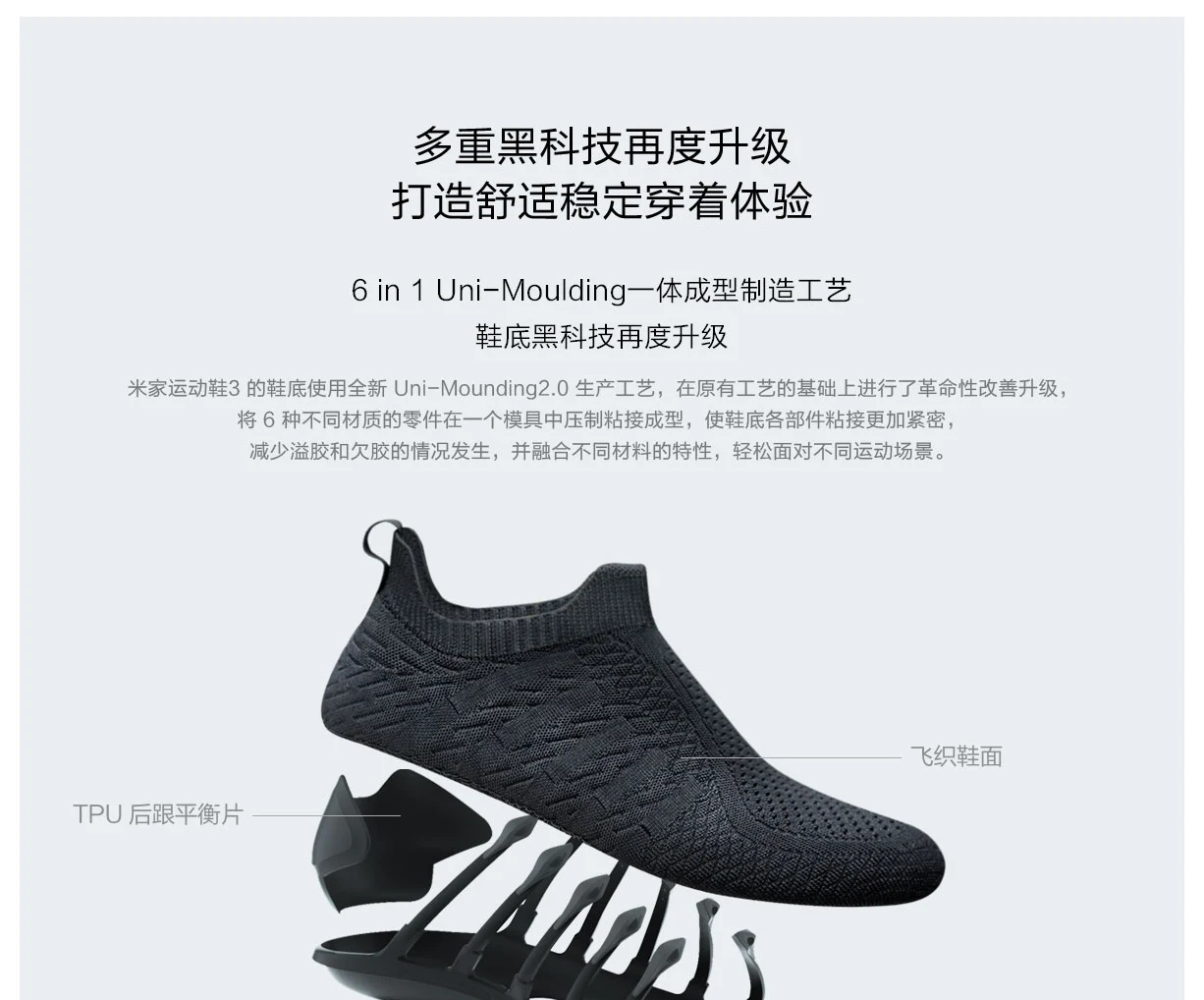 | Original Xiaomi Mijia Sneakers 3 Men's Outdoor Sports Uni-moulding 3D Fishbone Lock System Knitting Upper Men Running Shoes |