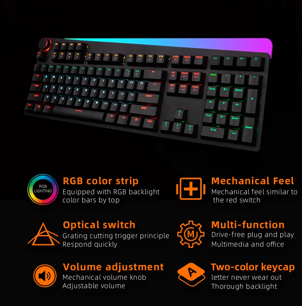 The best product you are looking for is "Profession Gaming mechanical keyboard RGB backlit 112 keys wired Optical axis Russian/English layout keyboard for Computer gamer". This product is available and ready to be purchased. Get attractive discounts every time you shop in our store (aliexpress.com). Aliexpress also provides a coupon of $ 3 for the first buyer to shop there. don't forget to bookmark our store page so you can go shopping again anytime..