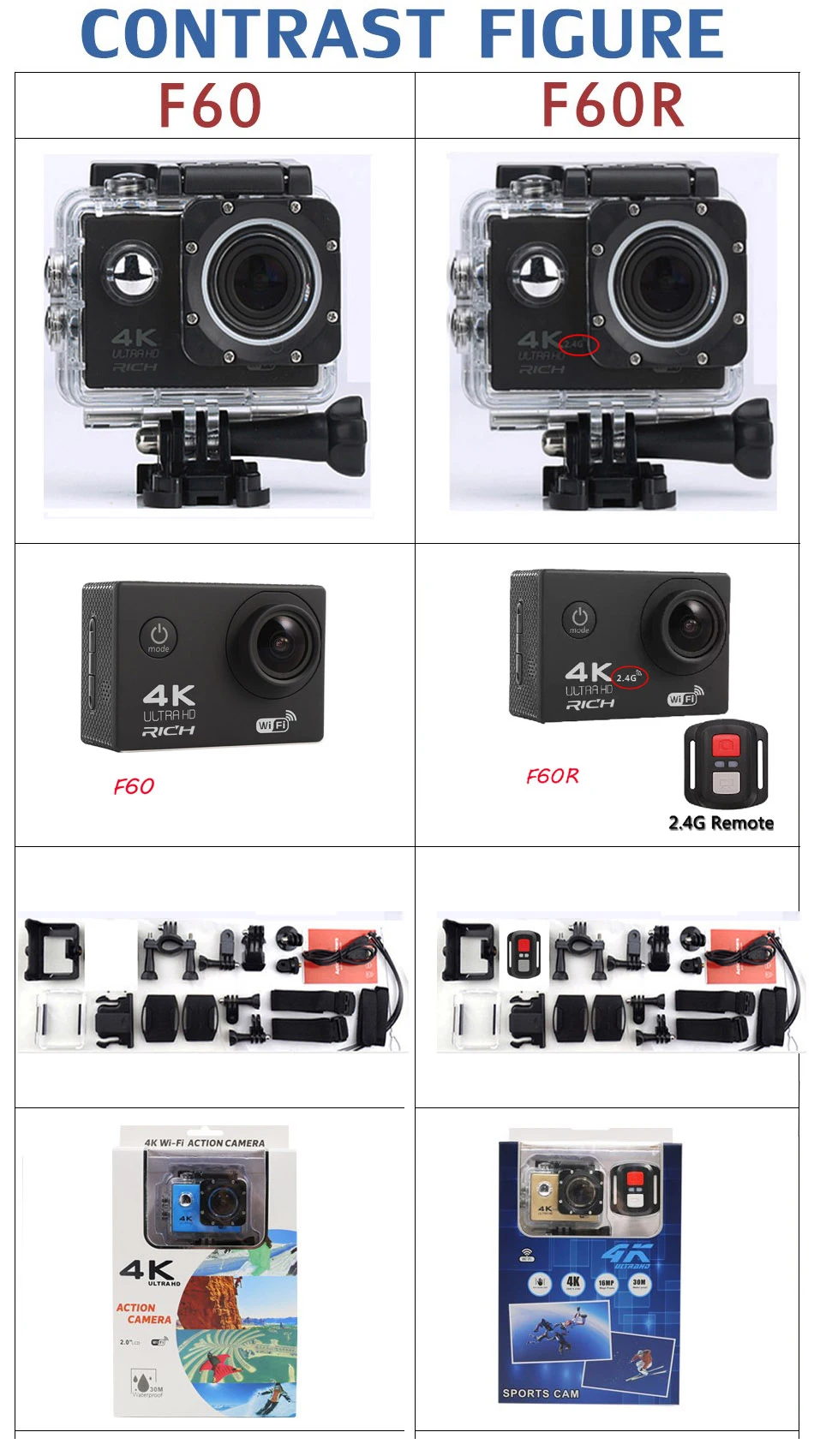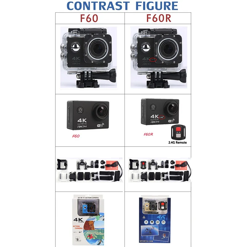 Best Price Comparison With RICH Action camera F60 / F60R Ultra HD 4K / 30fps WiFi 2.0 170D go Helmet Cam pro underwater waterproof Sport camera