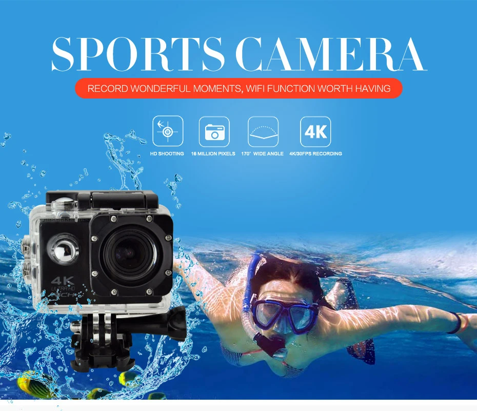 Ultra HD 4K Action Camera WiFi Remote Control Sport Camera Go Waterproof Pro Helmet Camera Sports DV 170 Degree Angle CameraBuy Now On Aliexpress