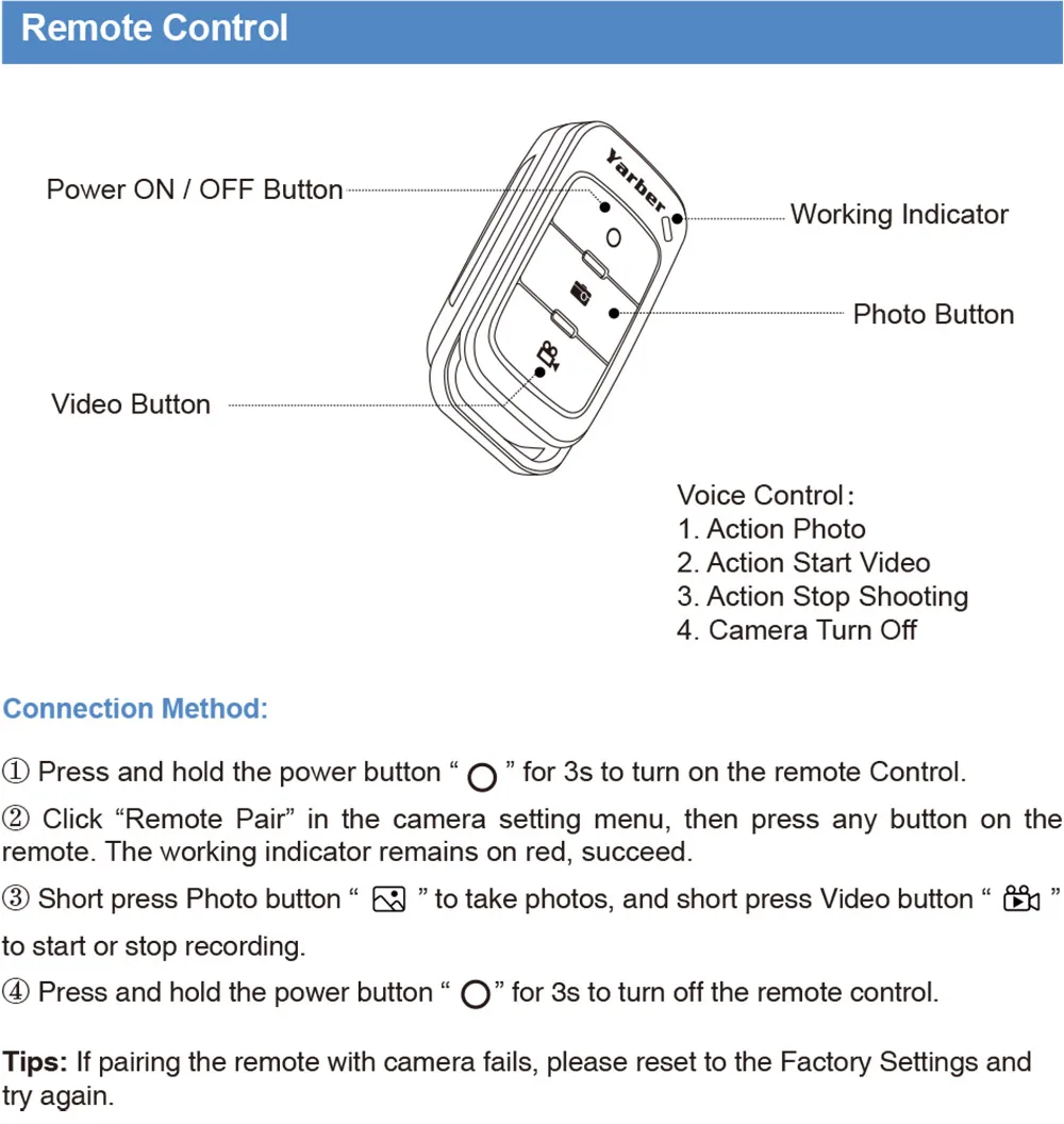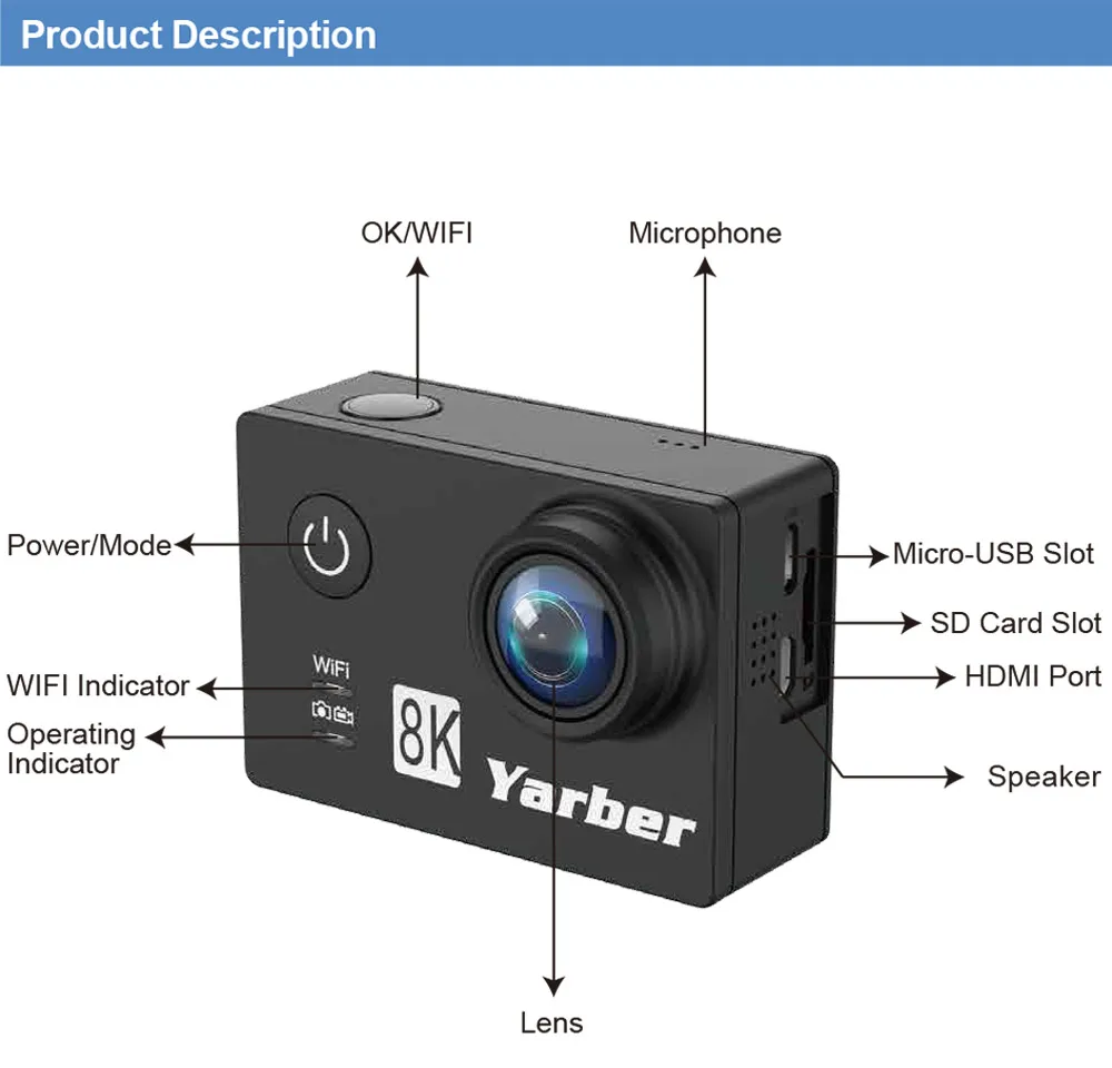 Take the Yarber AR01 Action Camera to find and record the wonderful moments in life. Suitable for outdoor sports such as cycling, climbing, diving, surfing, skiing, etc.