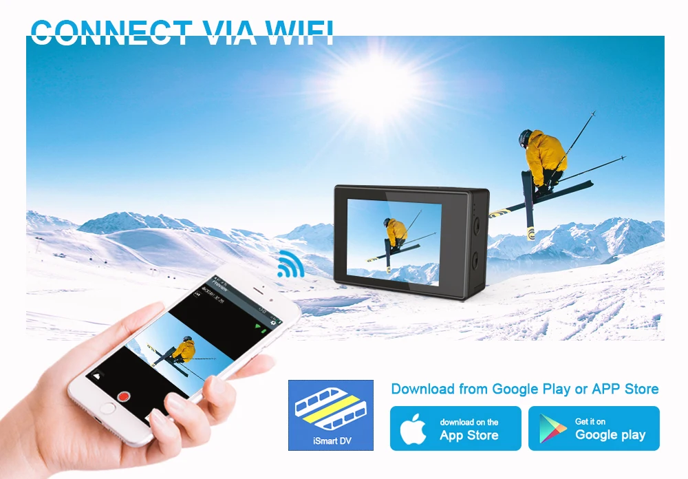 Download the APP " iSmart DV" from Google play or APP store Simple operation and fast connection Attach your camera to helmets, gear and equipment. Original high quality CLASS 10 64GB/32GB memory card