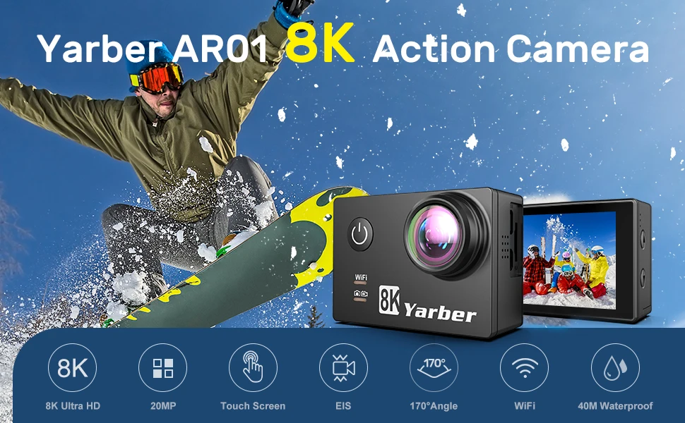 Yarber 8K action camera AR01 shoots native real 8K at an incredible frame rate of 15fps, and it able to capture the highest resolution combined with the highest frame rate ever seen in an action camera, 4K at 60 frames per second. Record fast-moving action in clear and crisp quality.which enables you to show all your adventures in crisp, brilliant details, and makes you capture every pixel of exquisite and lifelike scene. It's totally different from those Interpolated / fake 4K. So whether you’re having fun with your pets, hitting the road on a bike, or riding the wind surf, just take it and upgrade your world!