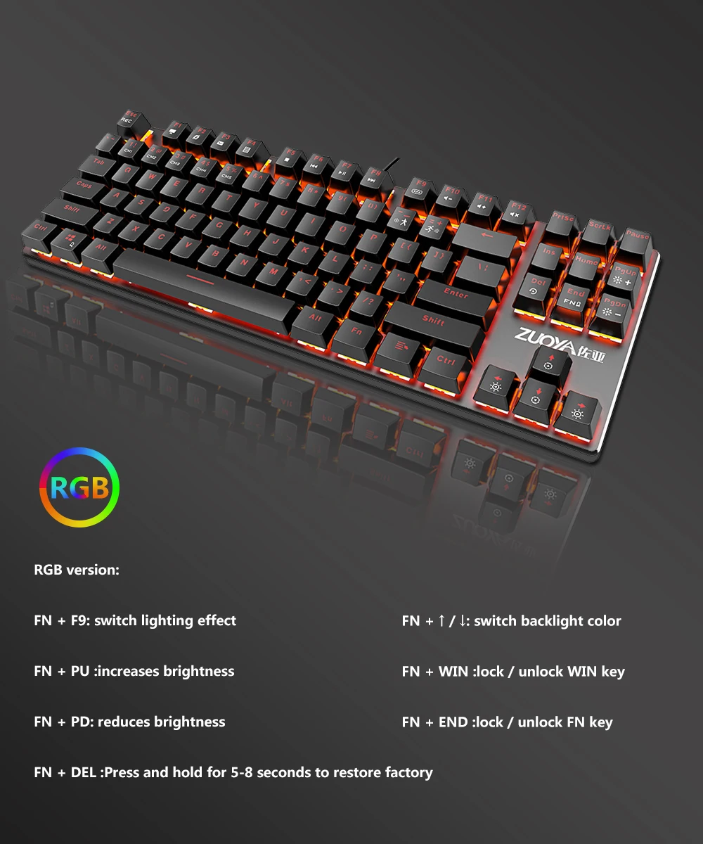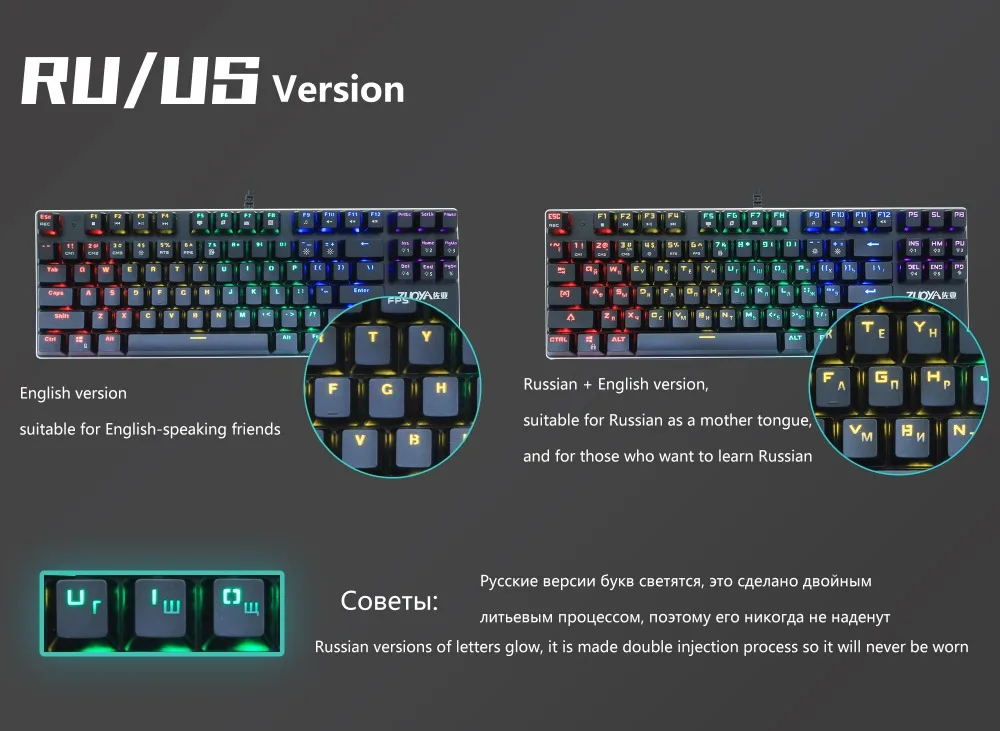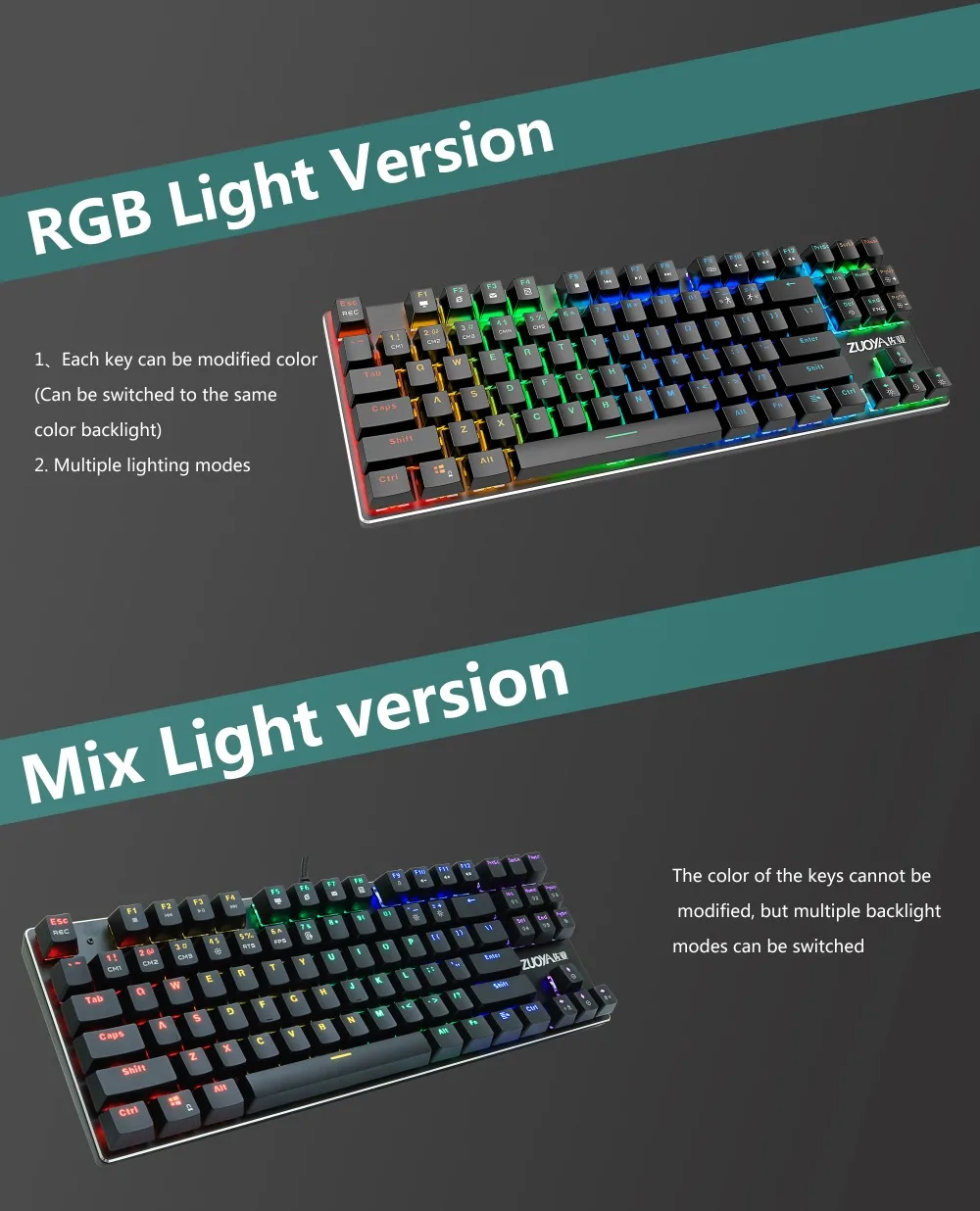 | ZUOYA RGB/Mix light Gaming Mechanical Keyboard USB Wired Russian/English layout Anti-ghosting Red Switch Keyboard For PC Gamer |
