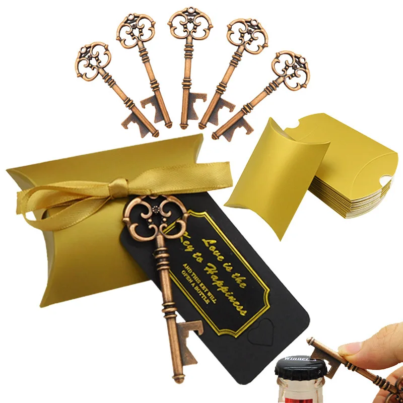 25set/lot Candy Box With Key Bottle Opener Beer Wine Opener Wedding Gifts for Guest Wedding Party Favors Marriage Decorations