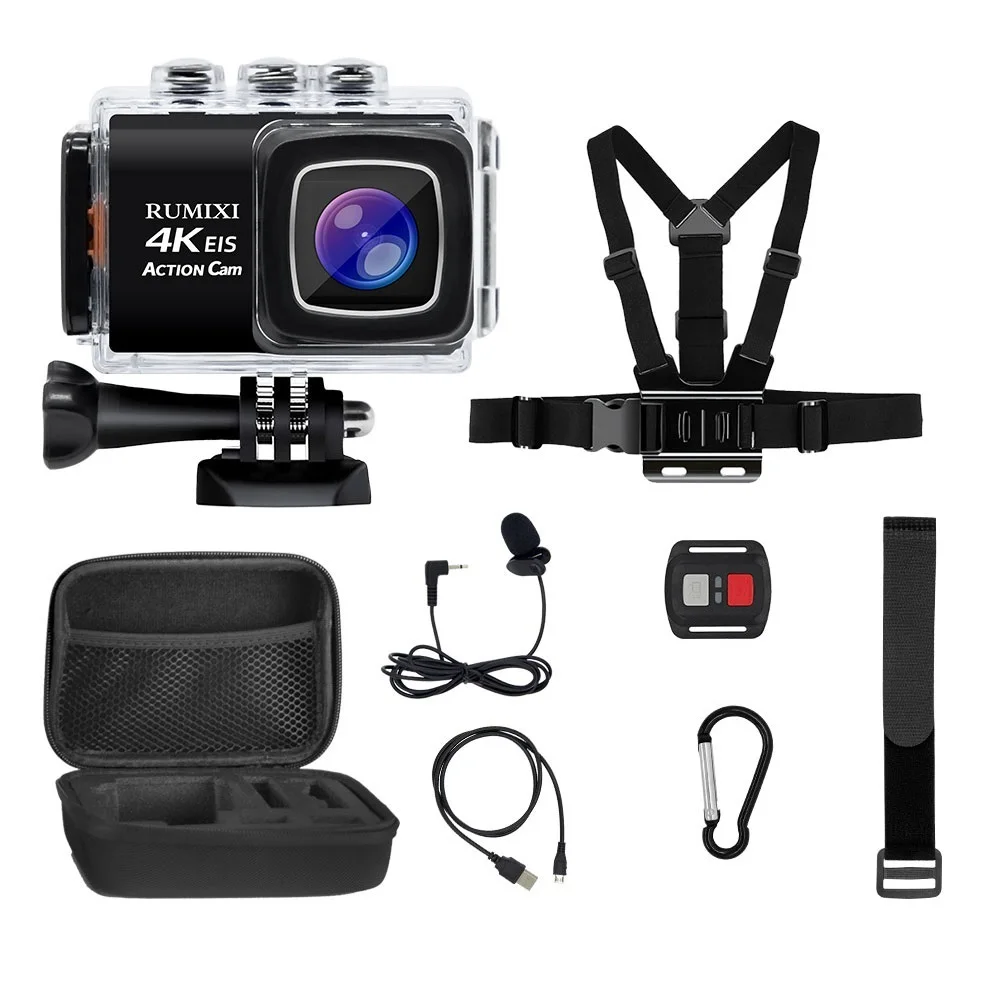 HD 4K Action camera Sports Camera with Bulit-in WiFi EIS Function Waterproof Remote Controller Mic Video Record Cam Accessories