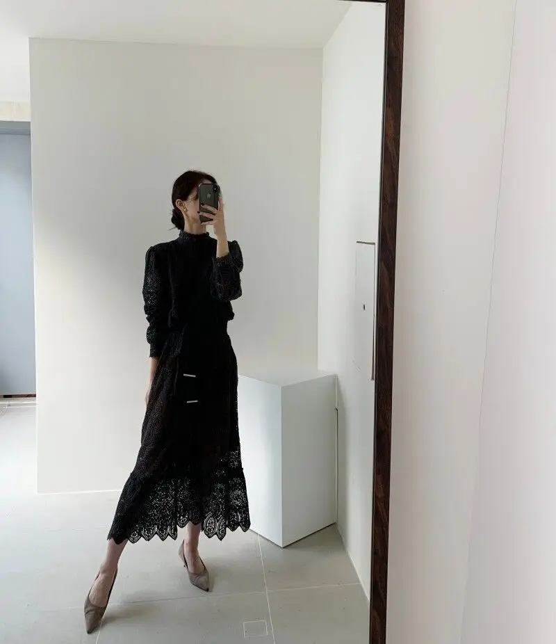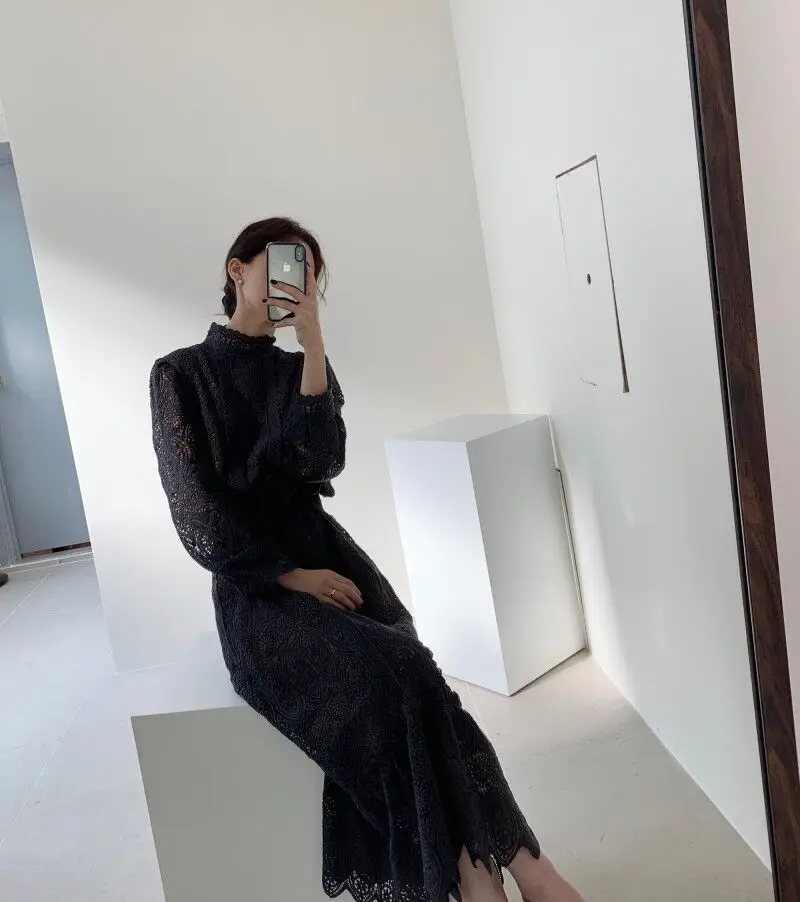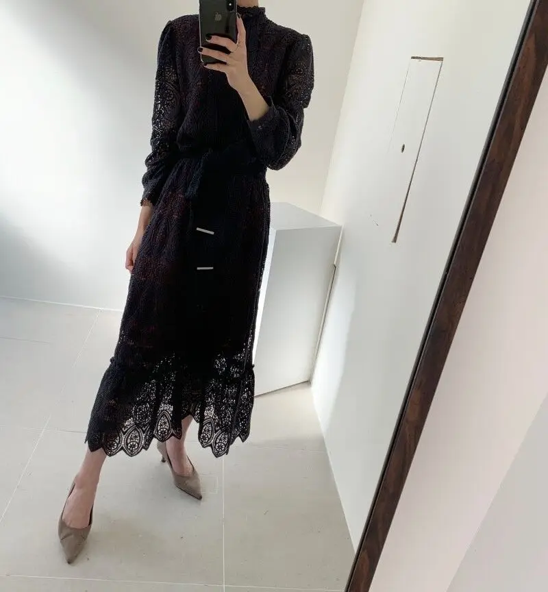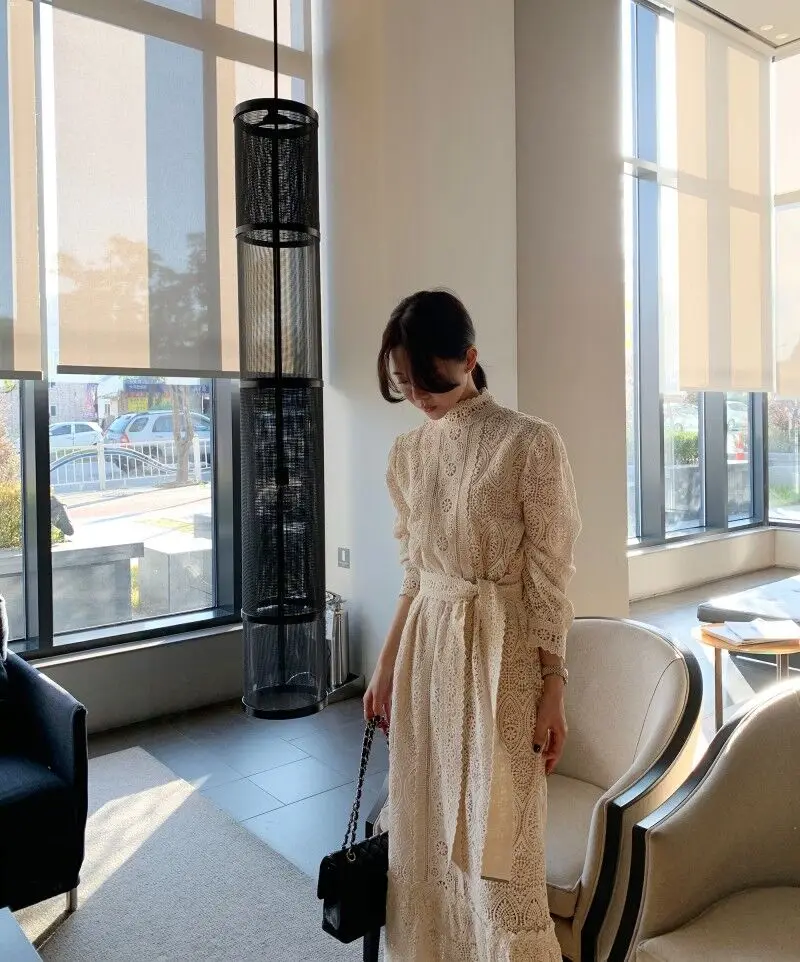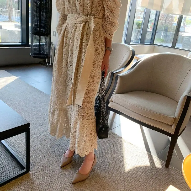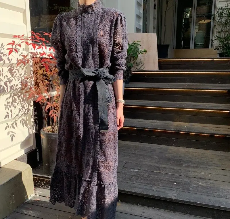 HziriP 2020 Stylish Lace All-Match Korean Elegant Lace-Up Chic Hook Flowers Women Sweet Gentle Fashion Girls Female Long Dresses