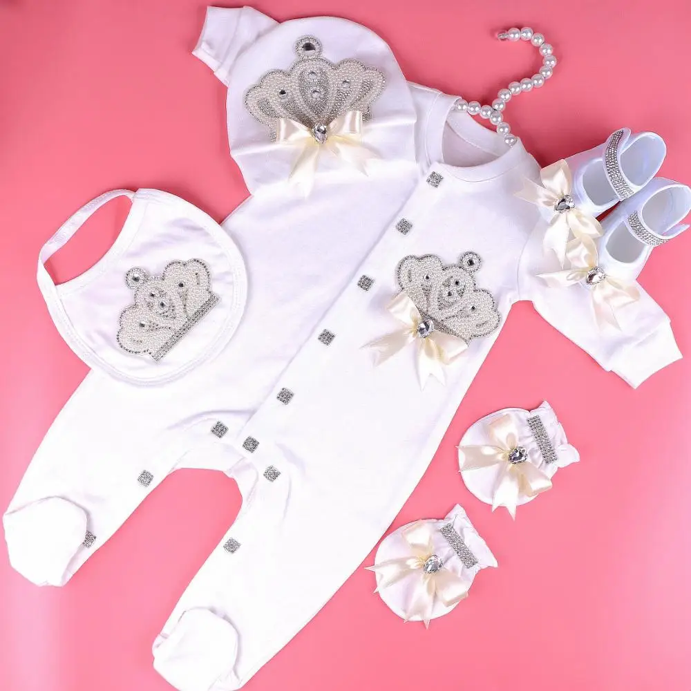0-6 month baby girl clothes princess pearl crown with bow newborn Infant baby bodysuit Pajamas Outfit 2020 Baby Clothes Gift New