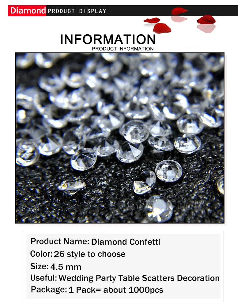 The best product you are looking for is "1000PS 4.5mm Acrylic Diamond Confetti Wedding Decoration Crafts Diamond Confetti Table Scatters Clear Crystal Centerpiece Party". This product is available and ready to be purchased. Get attractive discounts every time you shop in our store (aliexpress.com). Aliexpress also provides a coupon of $ 3 for the first buyer to shop there. don't forget to bookmark our store page so you can go shopping again anytime..