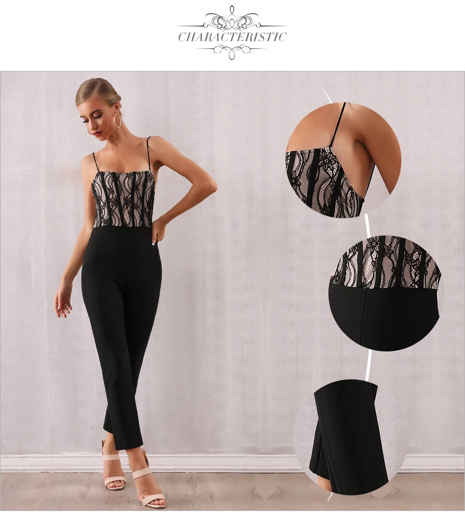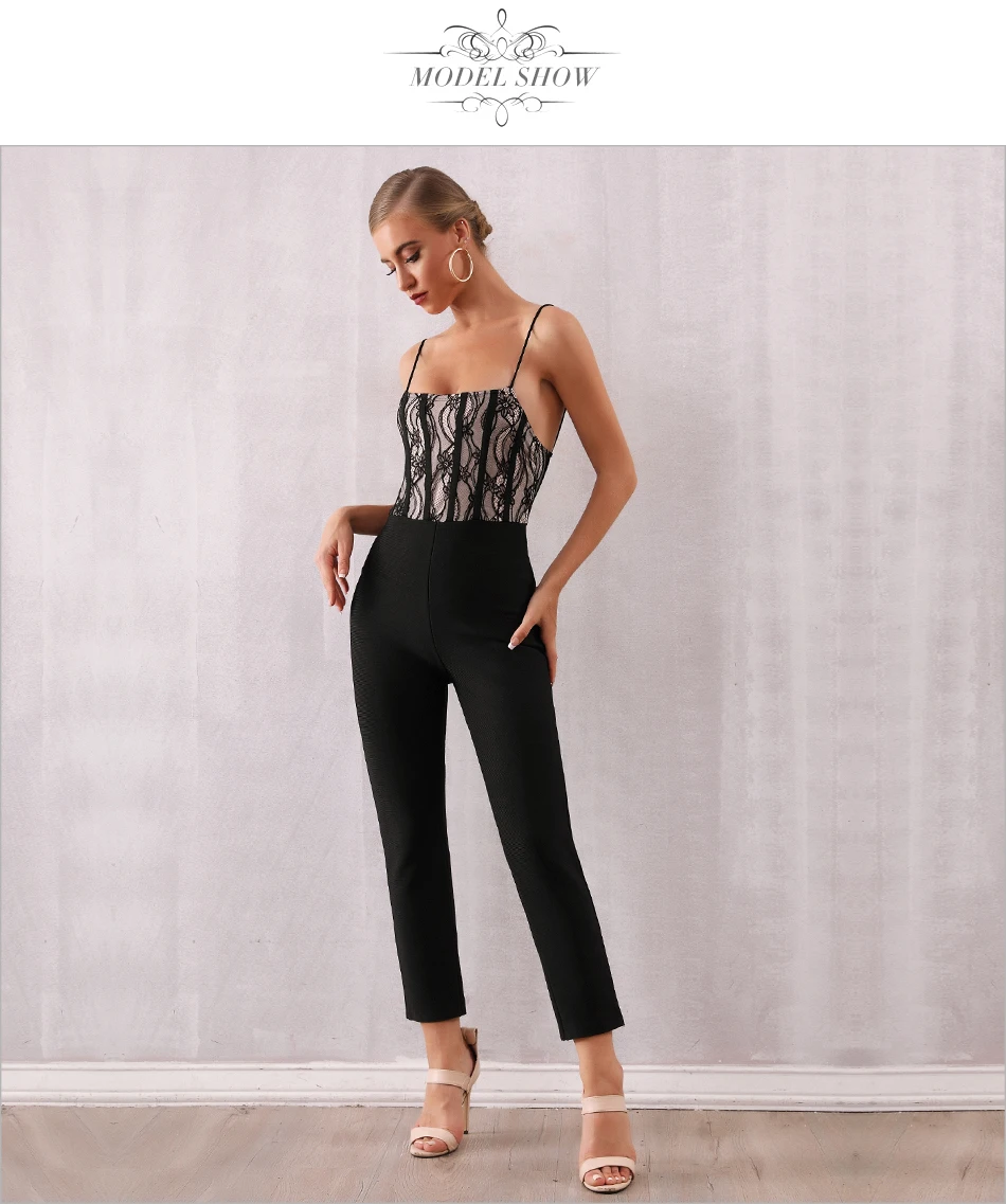 | ADYCE 2020 New Summer Lace Celebrity Runway Bandage Jumpsuit For Women Sexy Spaghetti Strap Sleeveless Club Long Jumpsuit Romper |