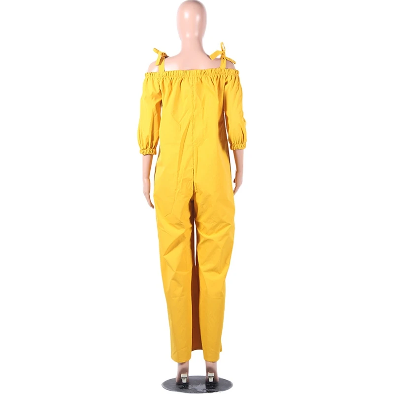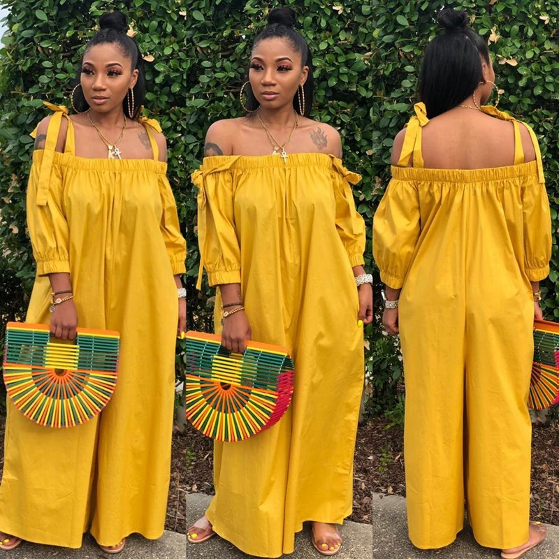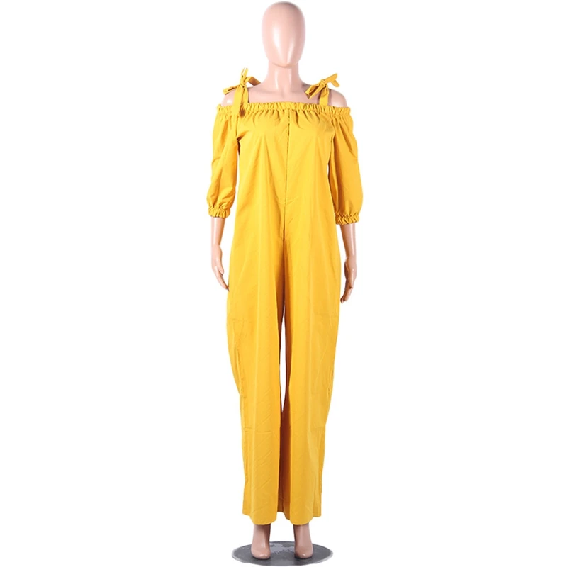 Check This Video Reviews ✨ Sexy Off Shoulder Wide Leg Jumpsuit Women Long Overalls Ruffle Party Stylish Backless Yellow Wais