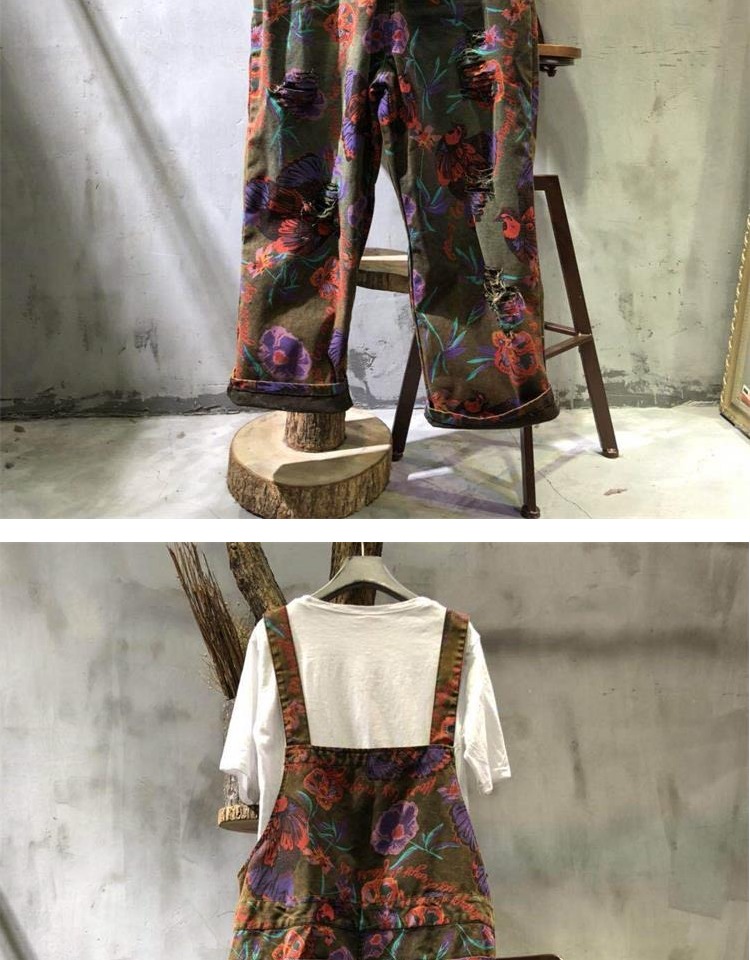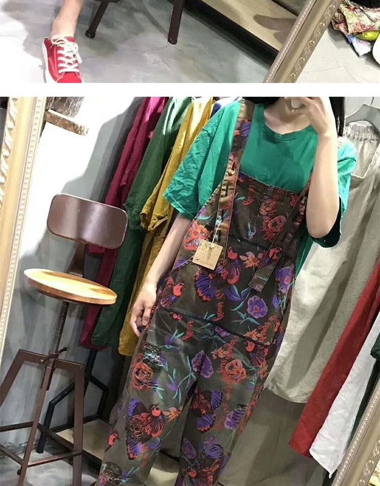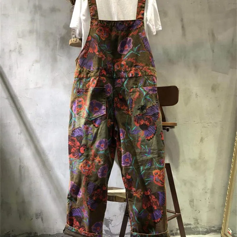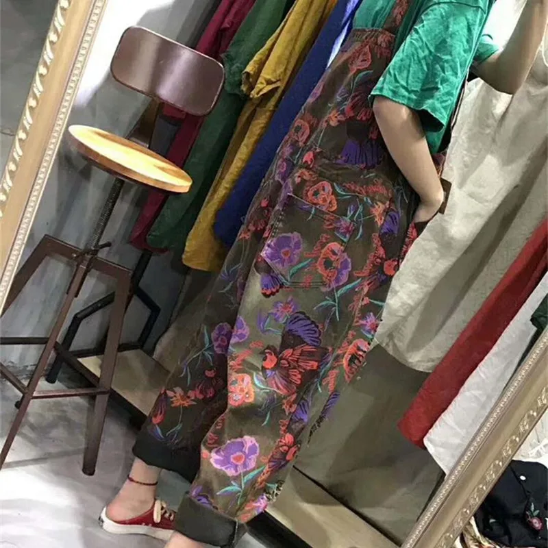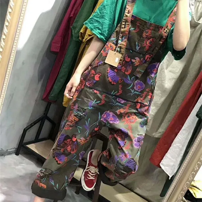 | Free Shipping 2019 New Fashion Flower Print Overalls Denim Loose Jumpsuits And Rompers With Pockets Long Pants Spring Jumpsuits |