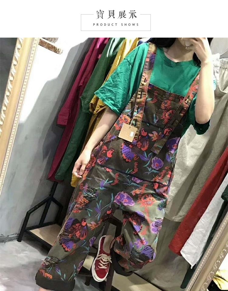 Free Shipping 2019 New Fashion Flower Print Overalls Denim Loose Jumpsuits And Rompers With Pockets Long Pants Spring Jumpsuits