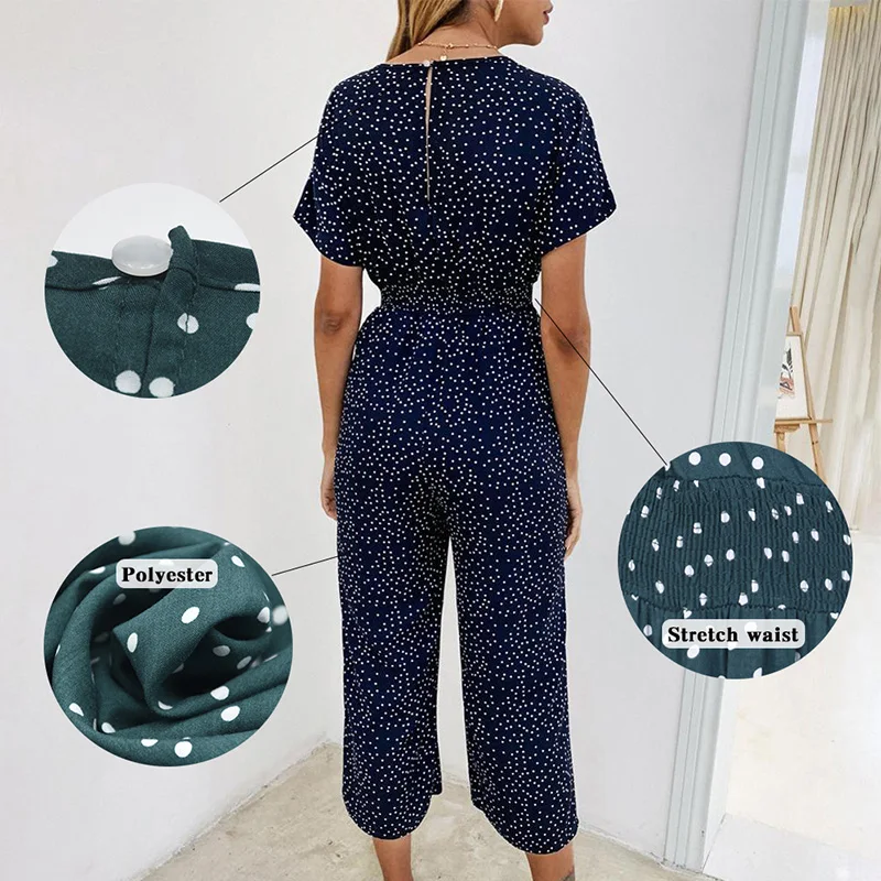 | Jumpsuit Short Sleeve Wide Leg Loose Jumpsuit Women Jumpsuits Rompers Summer Casual Print V-neck Pocket Overalls 2020 Fashion |