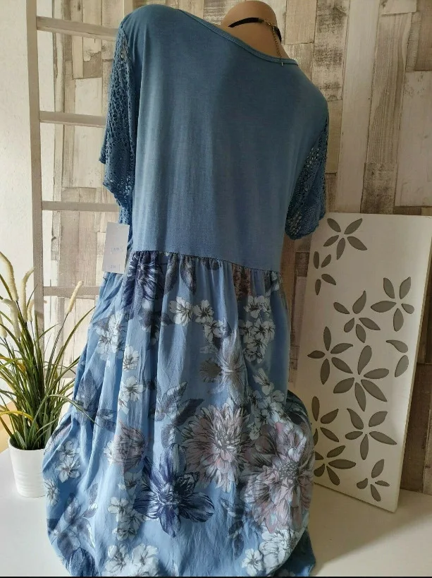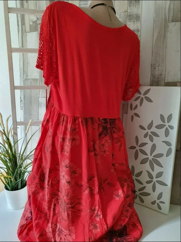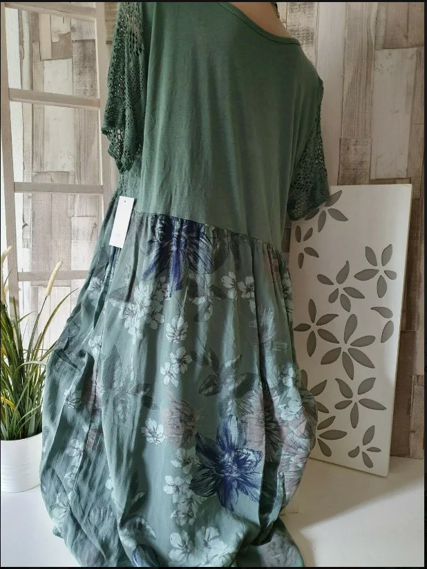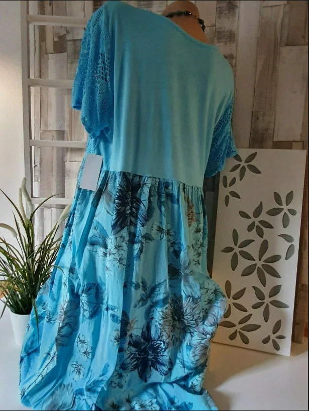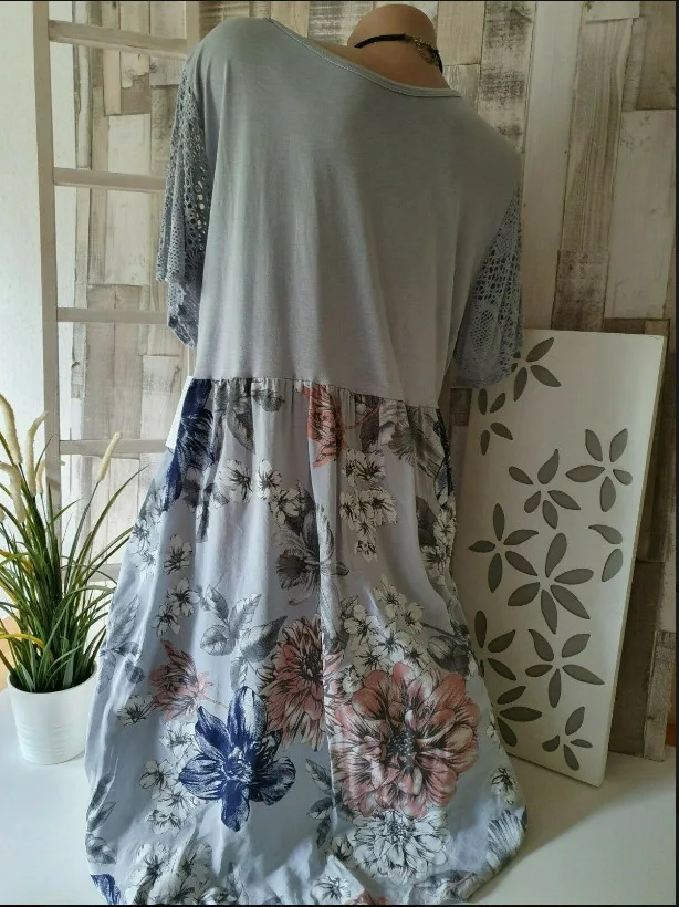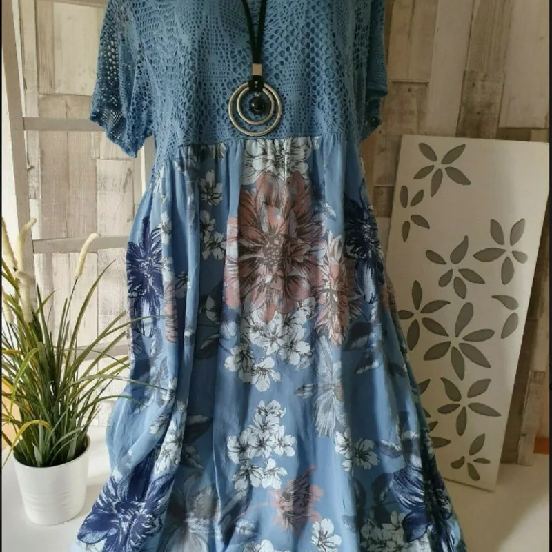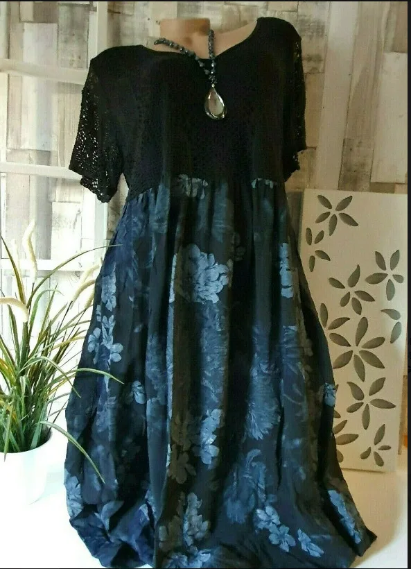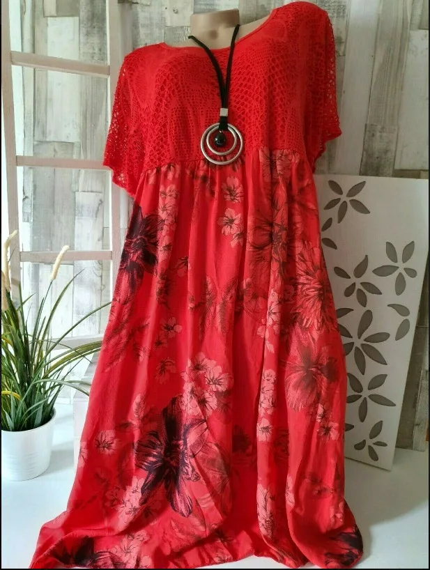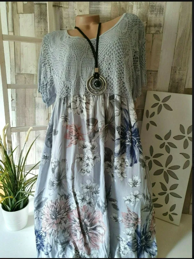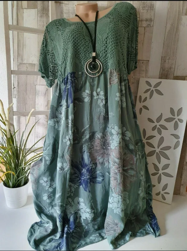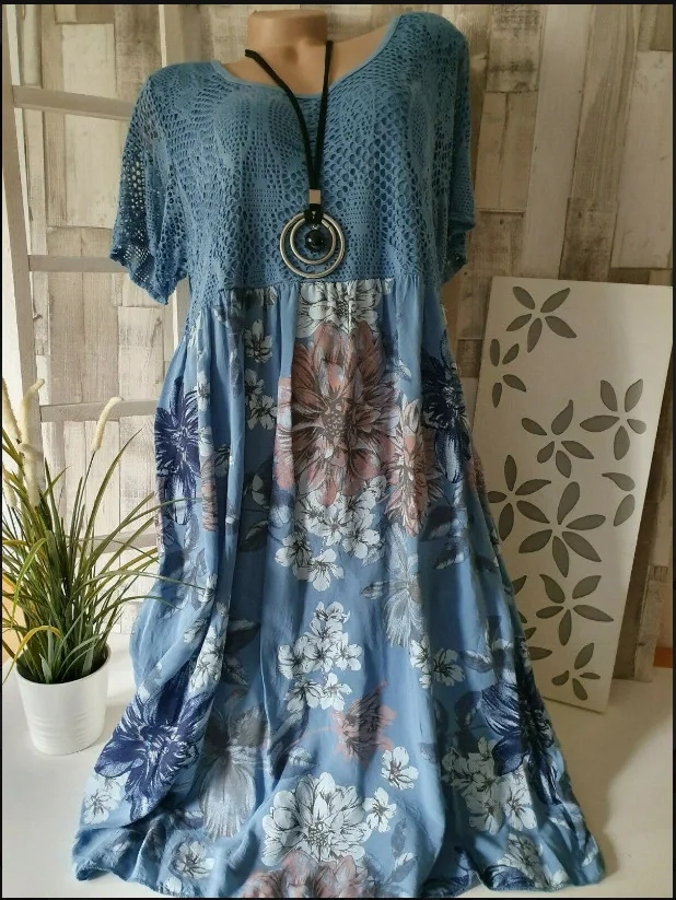 | Large Size Women's Dress 2019 summer new printed lace Dresses hollow short-sleeved Dresses 5xl |