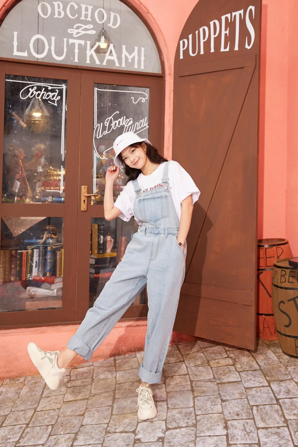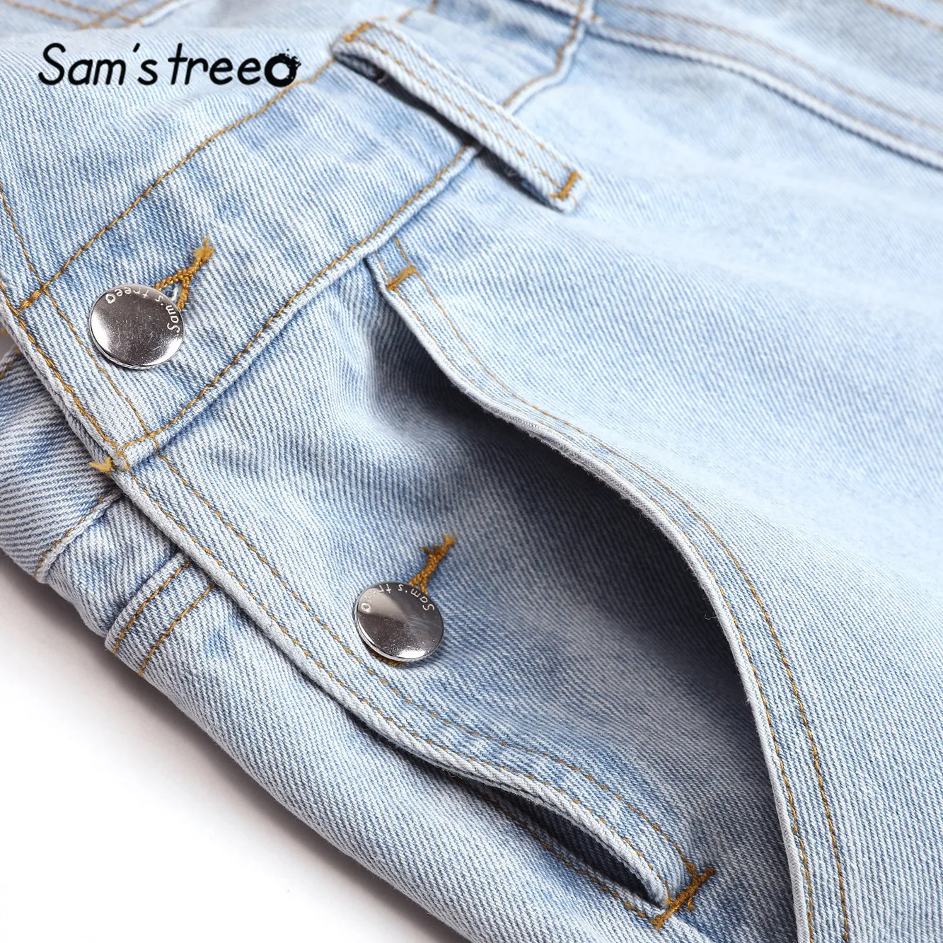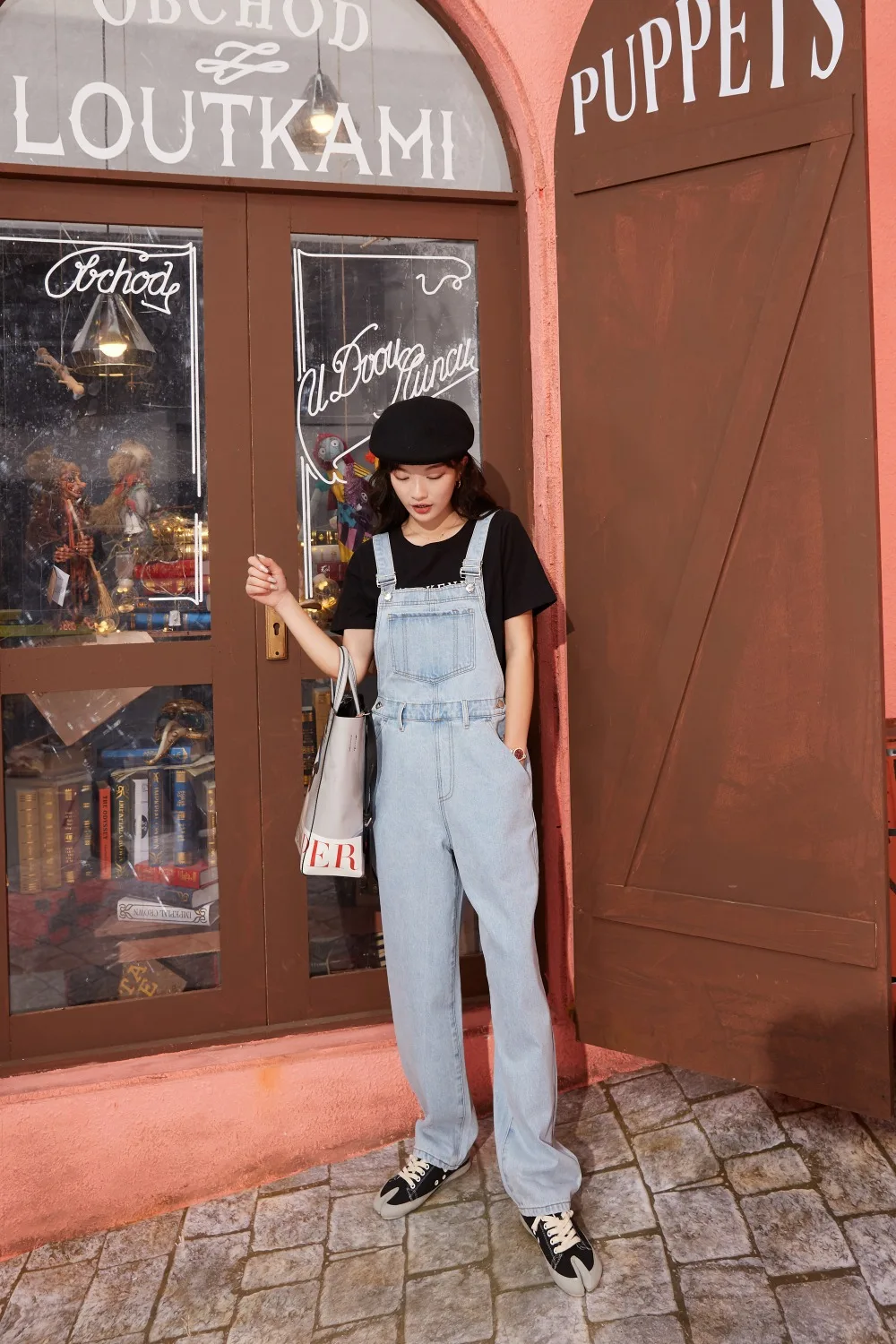 | SAM'S TREE Blue Solid High Waist Straight Washed Denim Overall Jeans Women 2020 Spring Pure Korean Girly Casual Basic Jumpsuits |