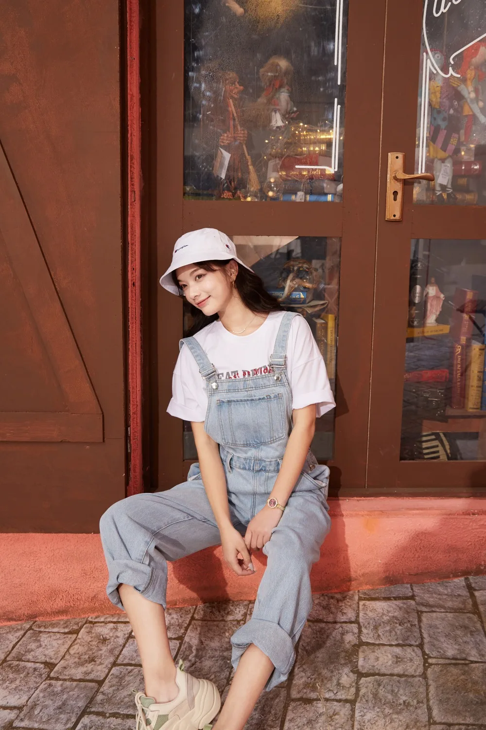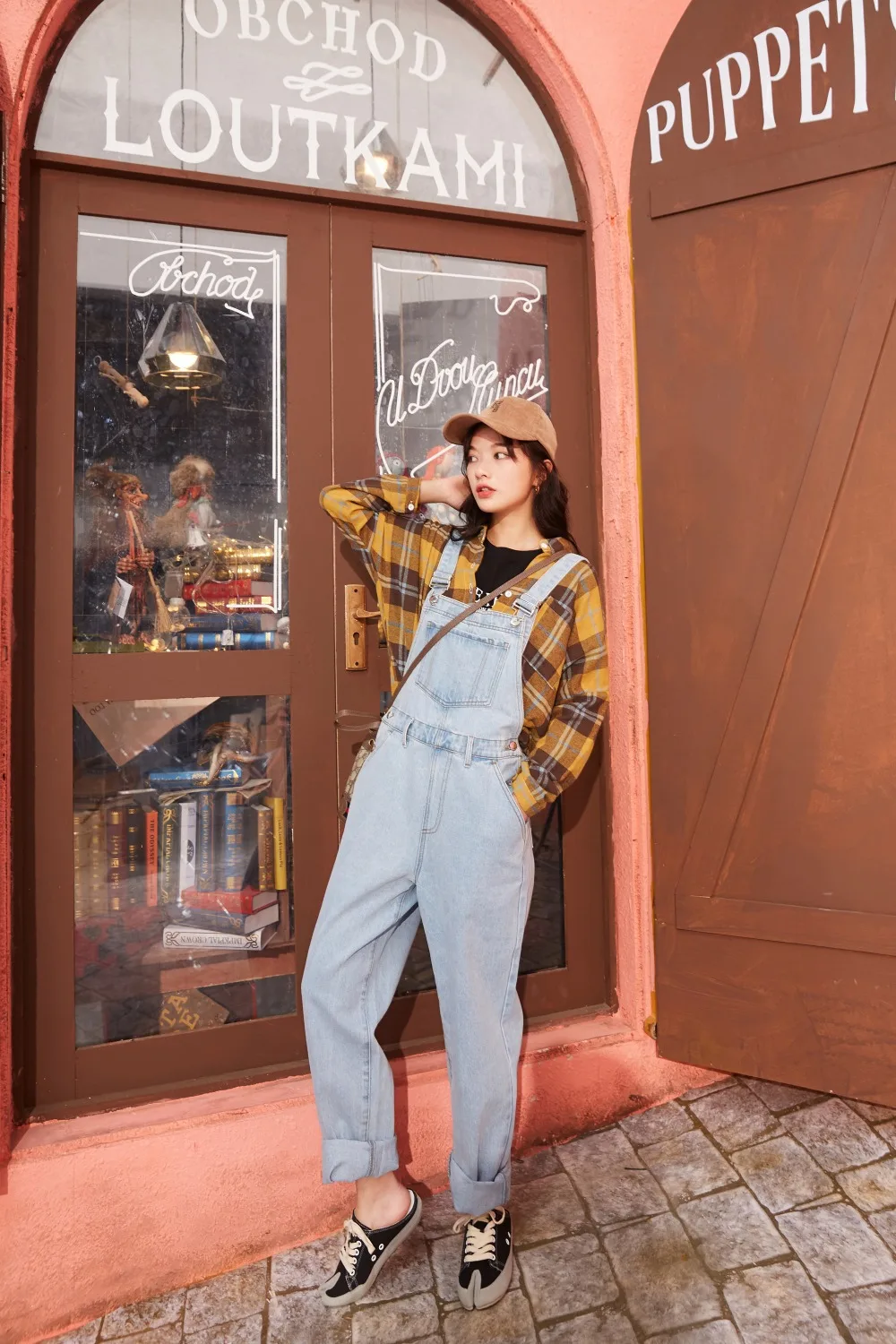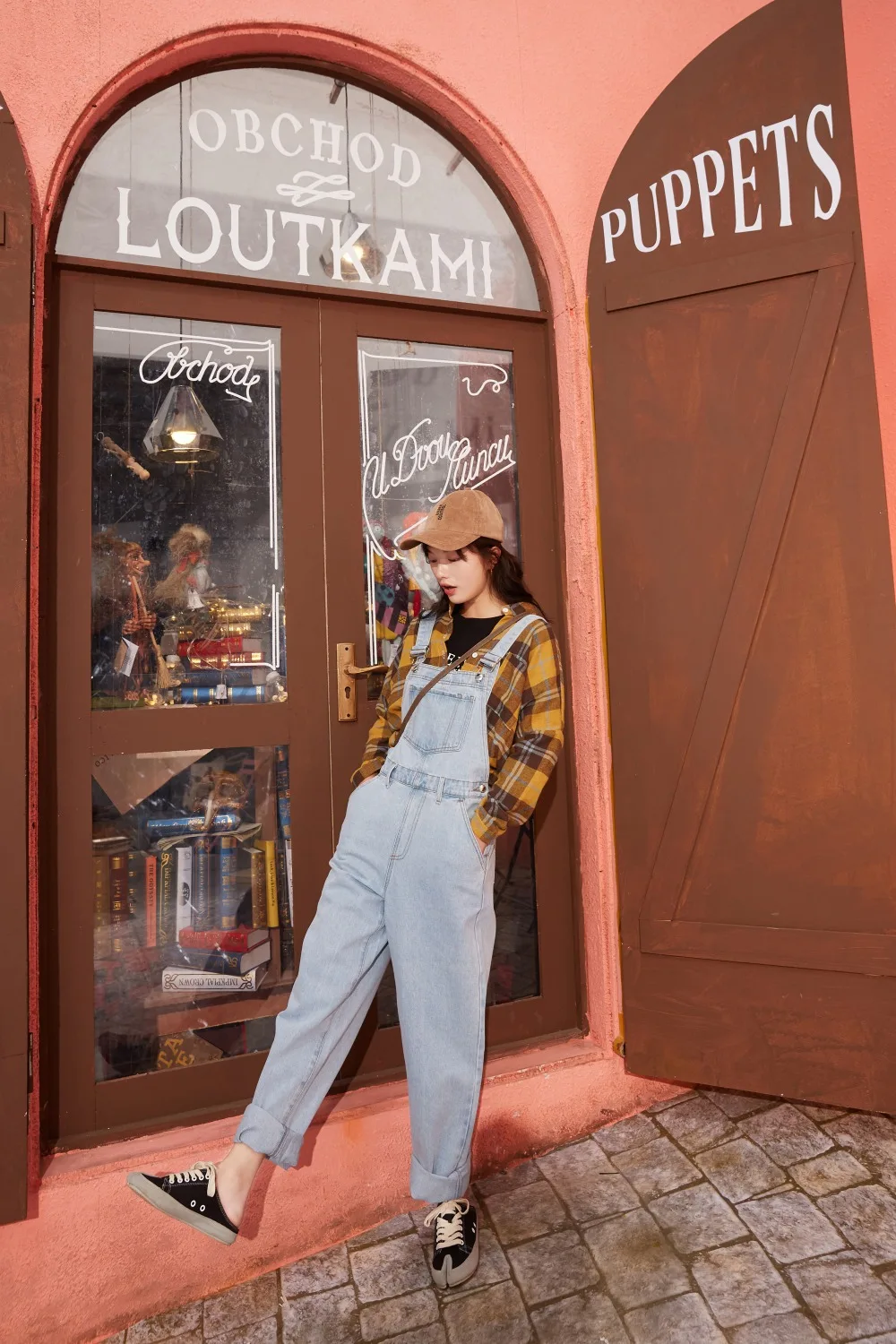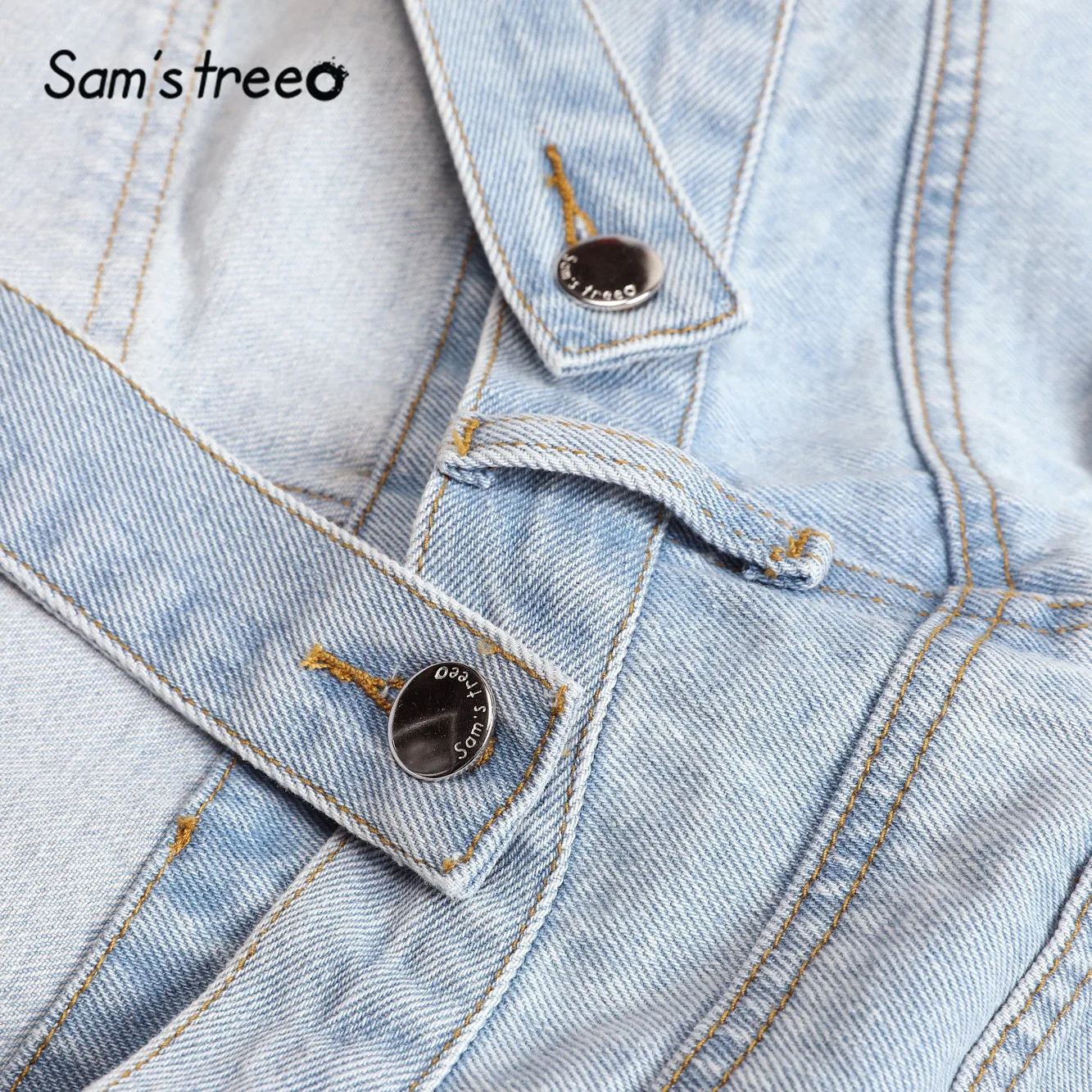 | SAM'S TREE Blue Solid High Waist Straight Washed Denim Overall Jeans Women 2020 Spring Pure Korean Girly Casual Basic Jumpsuits |