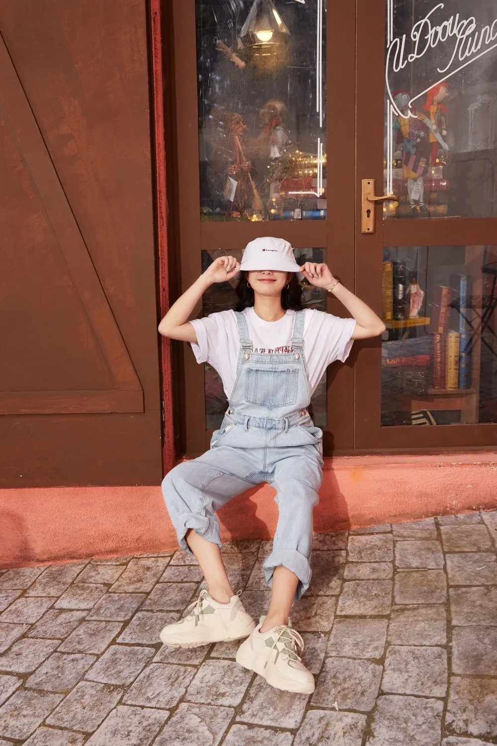 SAM'S TREE Blue Solid High Waist Straight Washed Denim Overall Jeans Women 2020 Spring Pure Korean Girly Casual Basic Jumpsuits