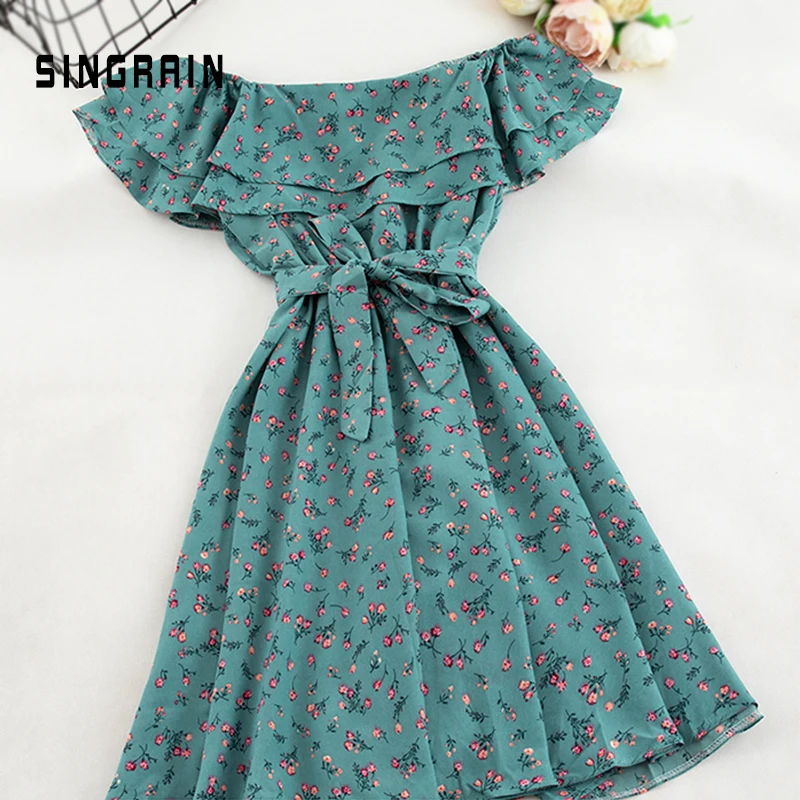0 Response to "SINGRAIN Women Floral Dress bohemian A-Line slash neck short sleeves dress summer vintage beach off shoulder Polka Dot Sundress"