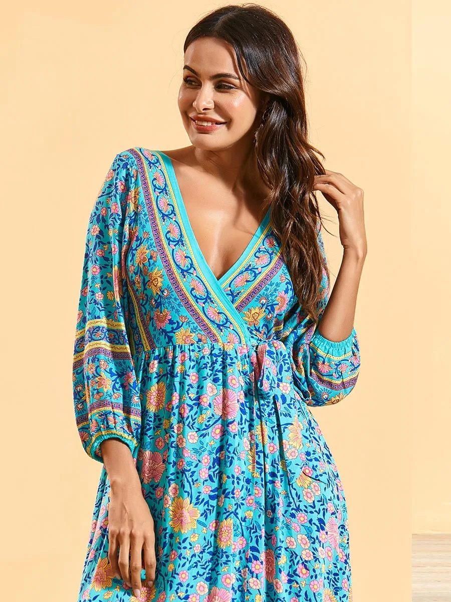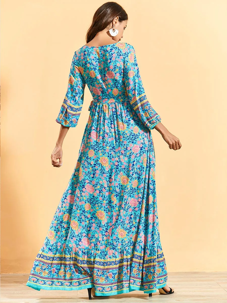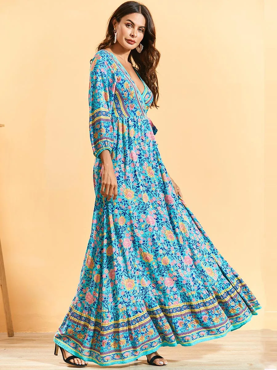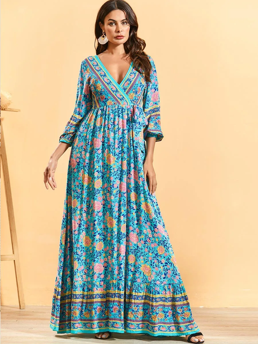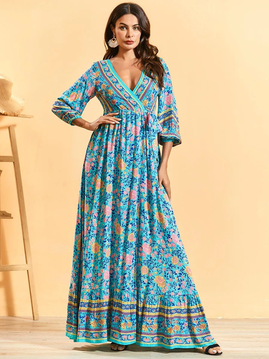 Womens Boho Floral Maxi Dress Summer Beach Party Strappy Sundress Plus Size Ladies Print Dress S-5XLBuy Now On Aliexpress