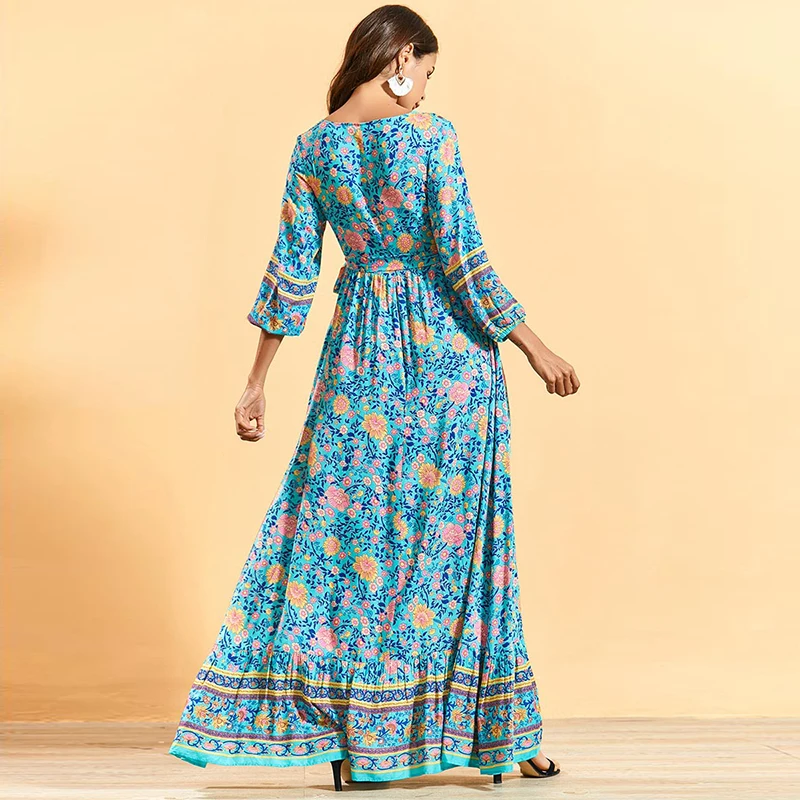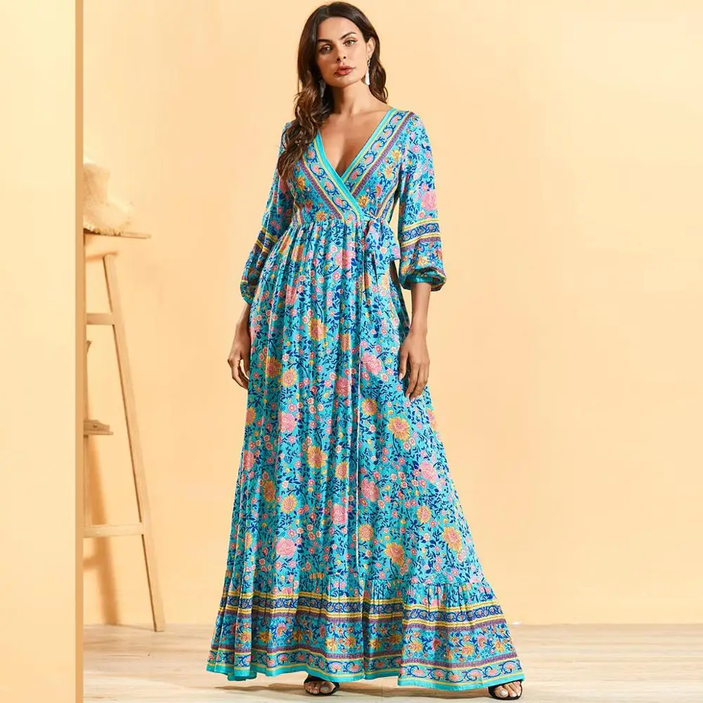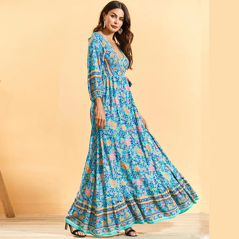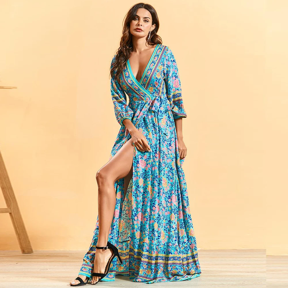 | Siskakia Bohemian Long Dress Deep V neck lace Up Slim Waist maxi Dress Sexy Split Beach Holiday Clothing Spring Summer 2020 New |