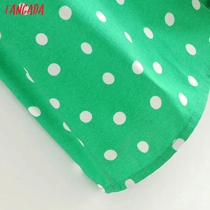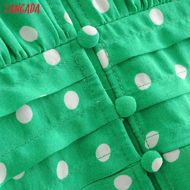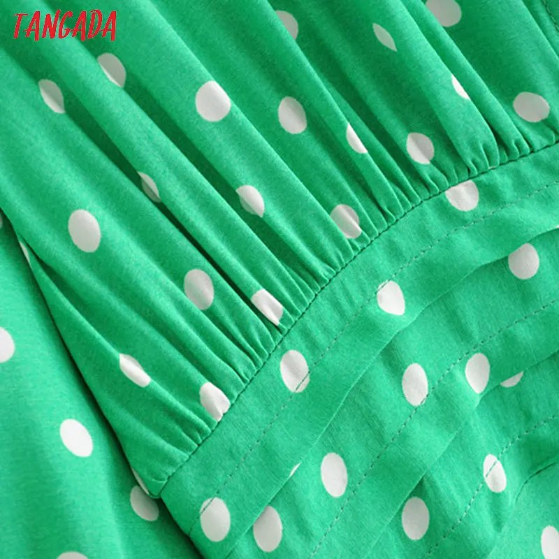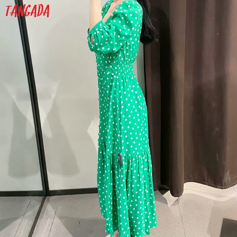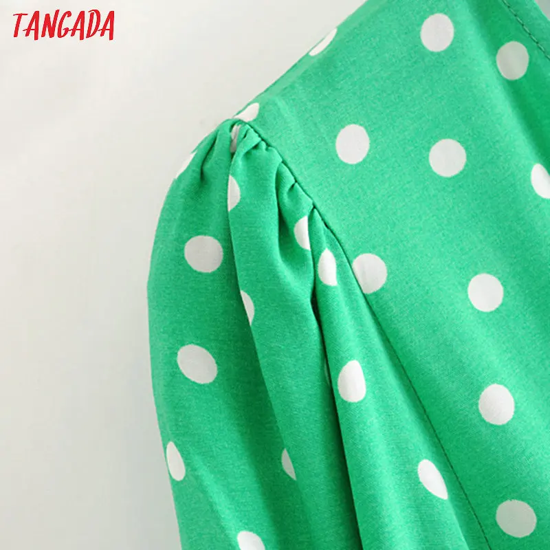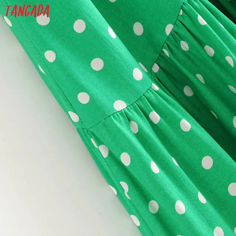 Tangada fashion women green dots print midi dress puff long sleeve ladies vintage summer dress vestidos 3H395