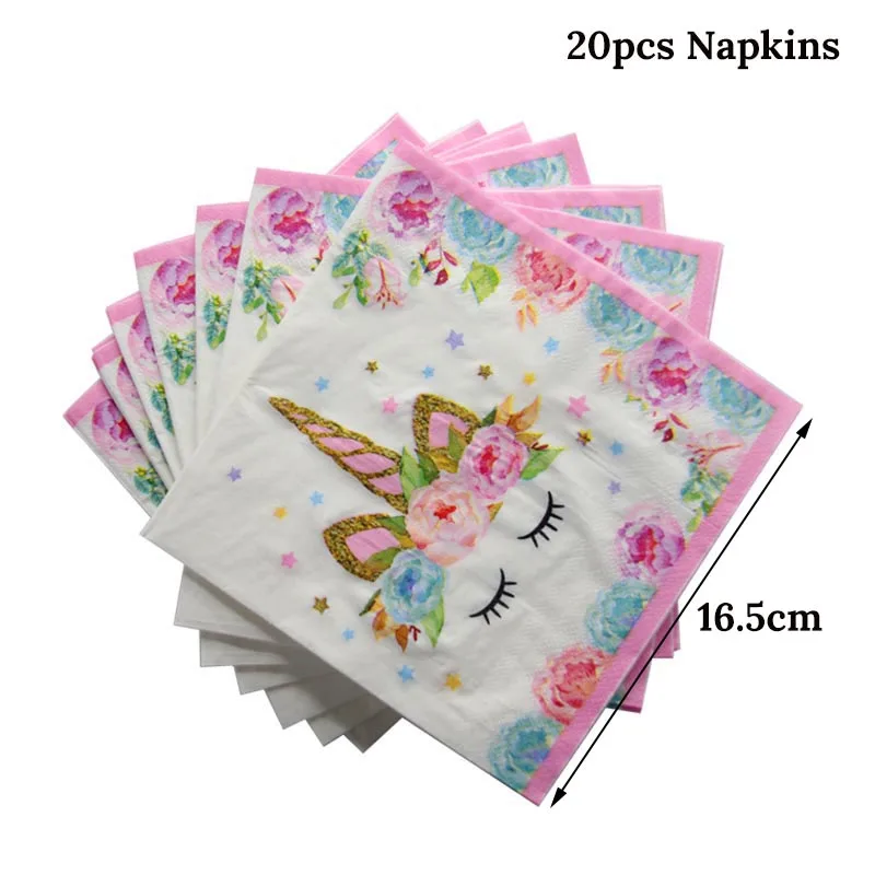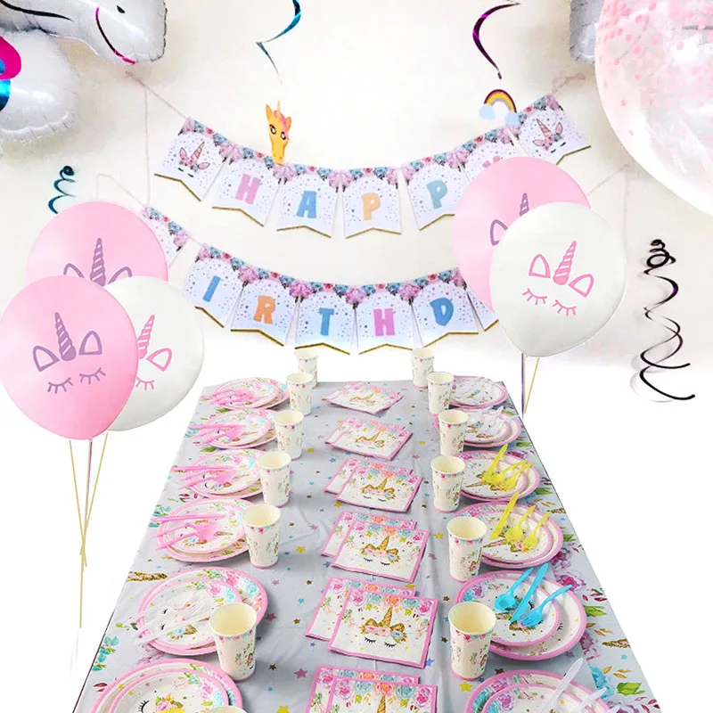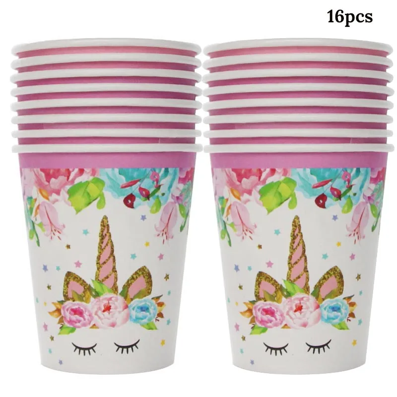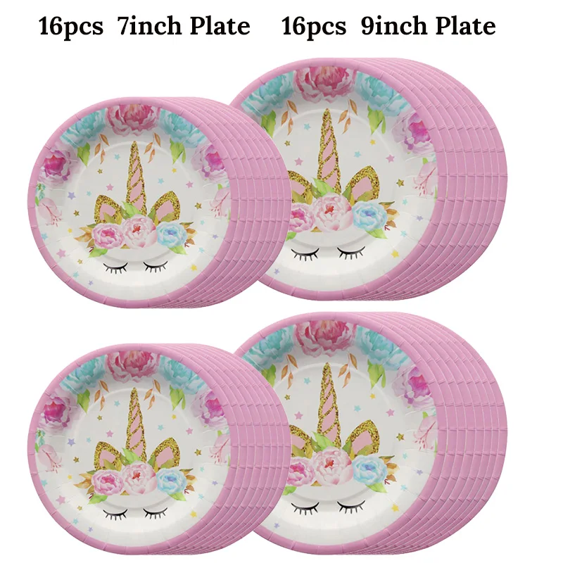 | Unicorn Party Supplies Set Disposable Tableware Serves 16 Birthday Party Pink and Gold Unicorn Paper Napkin Cup Plate |