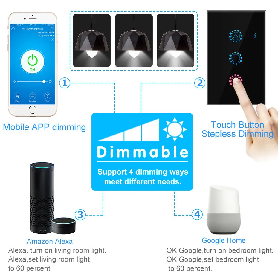 WiFi Dimmer Switch Smart Light Touch Switch Dimming Compatible with Amazon Alexa Google Home Dimmable 110V 220V US EU Standard