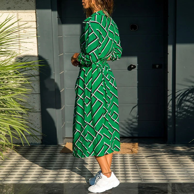 | Aachoae Striped Shirt Dress Women Summer Bandage Pockets Decorate Casual Dress Long Sleeve Fit And Flare Lady Dresses Ropa Mujer |