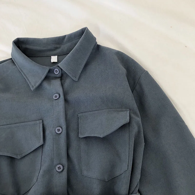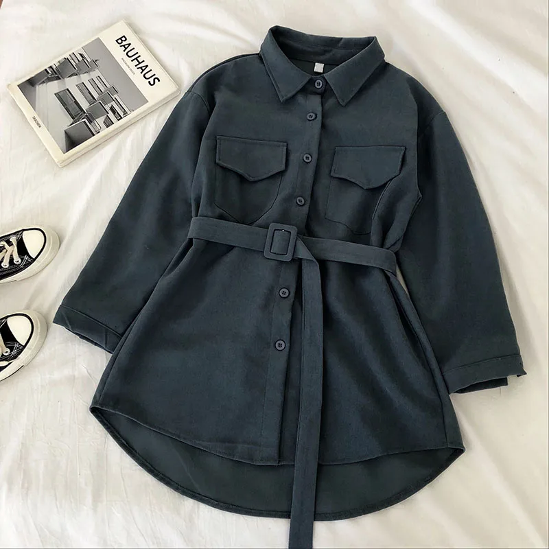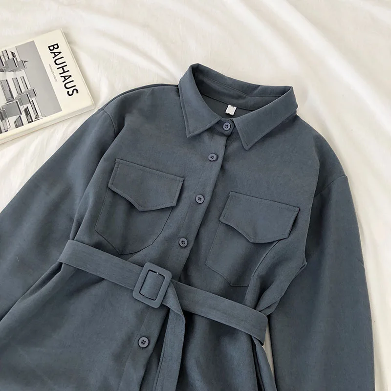 0 Response to "Corduroy Long Sleeve Dress Women Solid Buttons Pockets Turn-down Collar Simple Elegant Sashes All-match Womens Vintage Harajuku"