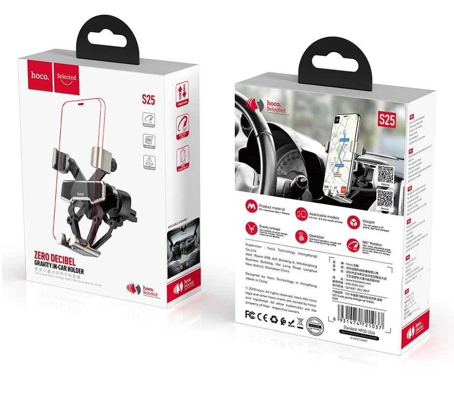 | HOCO New Universal Car Phone Holder GPS Stand Gravity linkage Air Vent Mount Holder Stand in Car For iPhone 11 Pro Xiaomi mi 10 |
