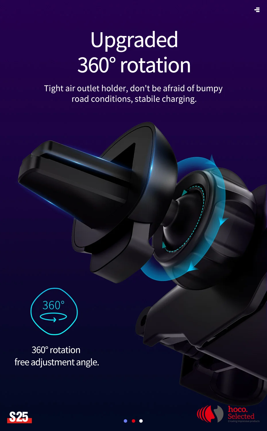 Tight air outlet holder,dont be afraid of bumpy road conditions,stabile charging.