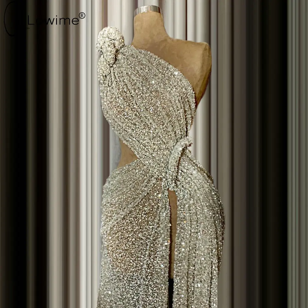 | Sparkly Glitter Sequined One Shoulder Evening Dresses Mermaid Sexy High Split Robe De Soiree Prom Party Gowns Vestido De Festa |