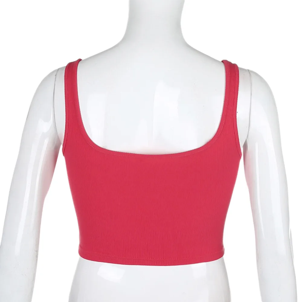 Summer Vest Tank Pure Color Halter Crop Tops Casual Sexy Butterfly Embroidered Short Slim Sleeveless White Tops