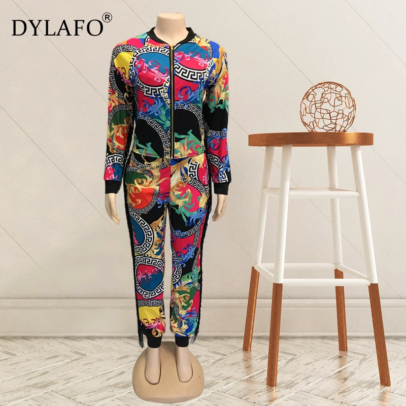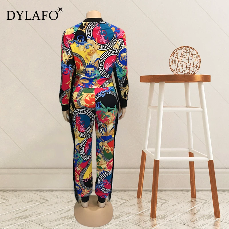 | Women Casual Digital Print Jumpsuit Tassel Screw Thread Women Jumpsuits Suits Elegant O-neck Long Sleeve Bodycon Overalls |