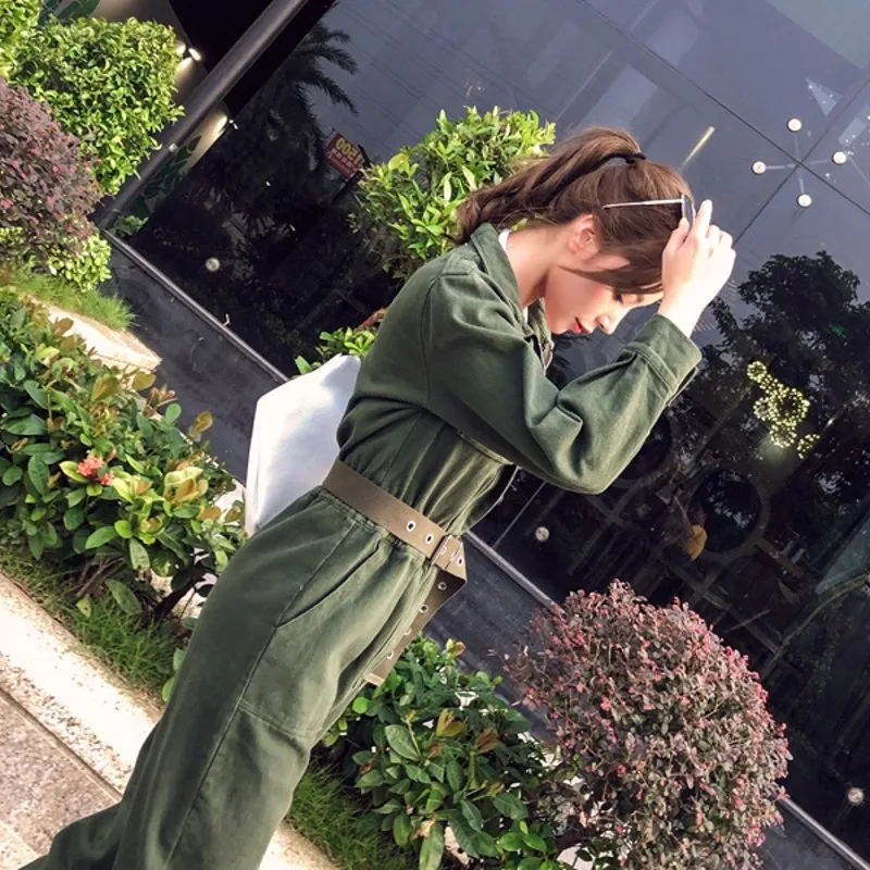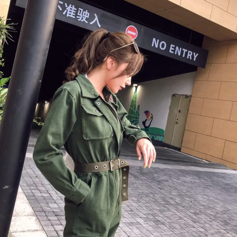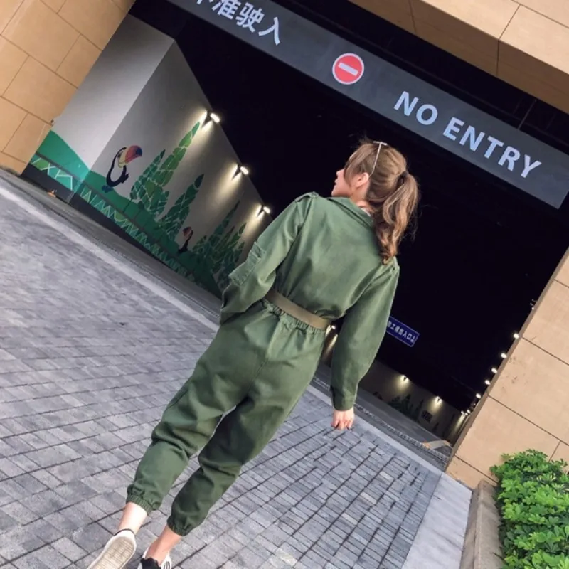 0 Response to "Women Denim Rompers Green Korean Long Sleeve Overalls Vintage Casual Sashes Slim Ankle-Length Jeans Jumpsuit Ladies Cargo Pants"