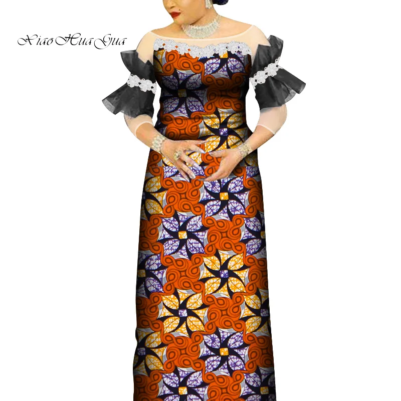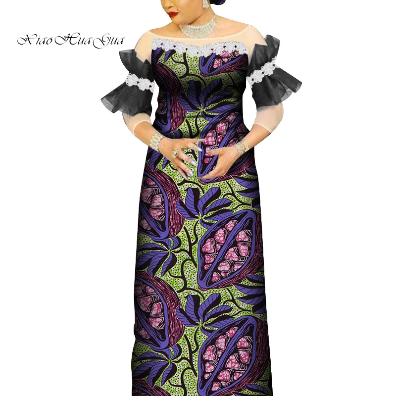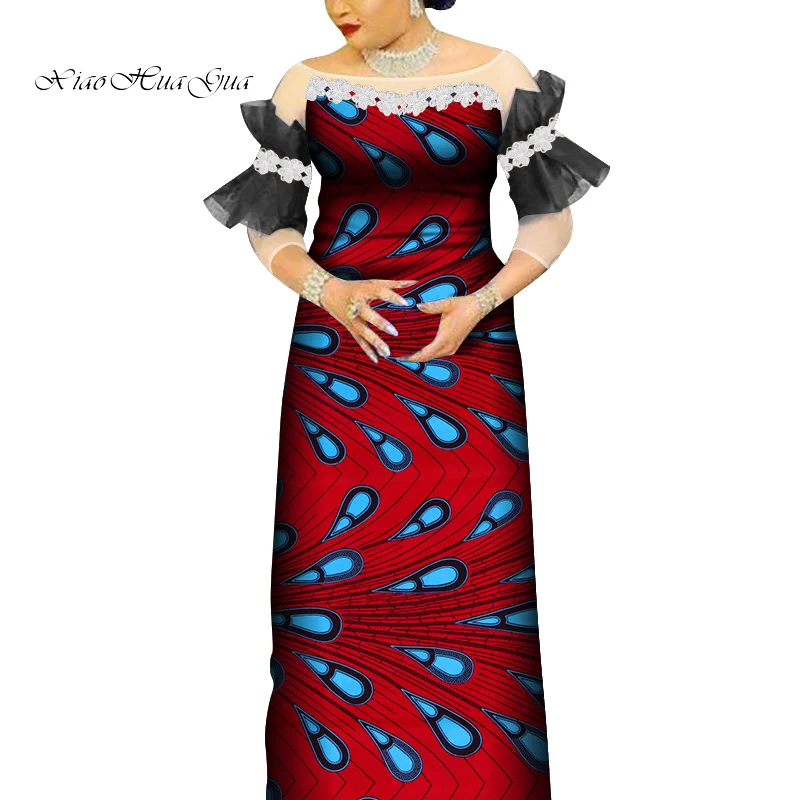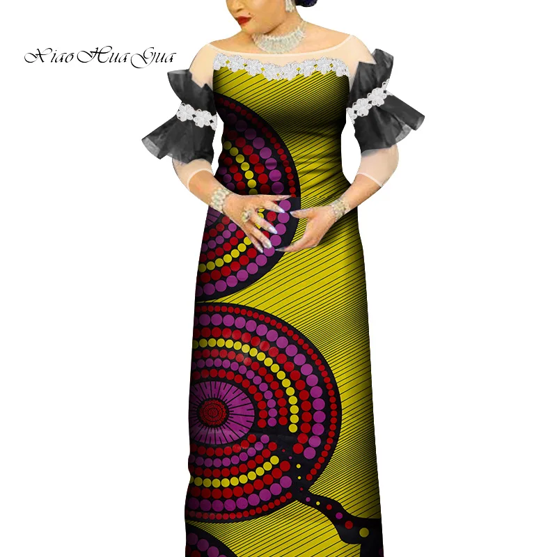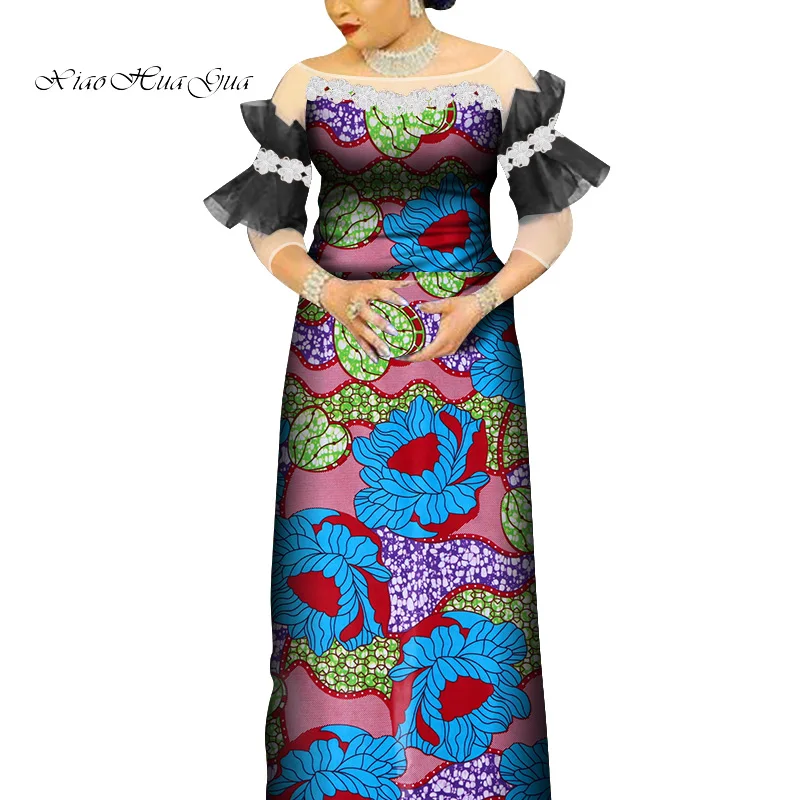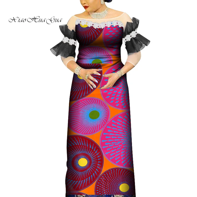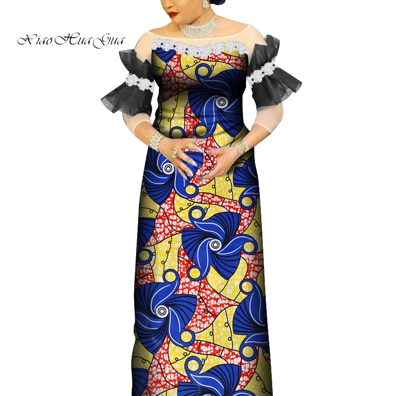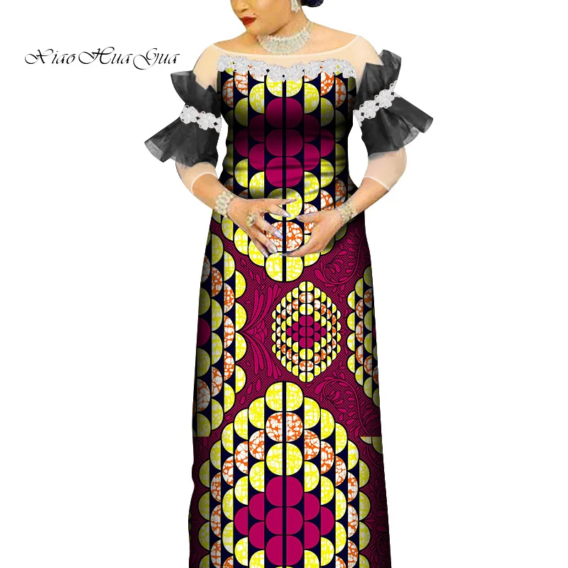 2020 Summer Ankara Long Dresses for Women African Wax Print Lace Robe Africaine Bazin Riche African Dresses for Women WY6730