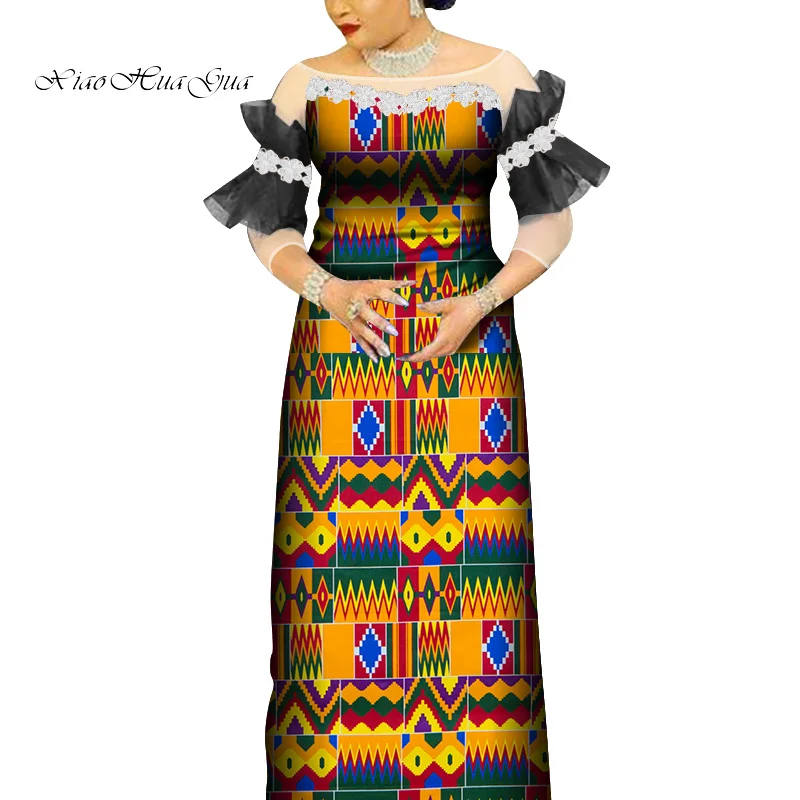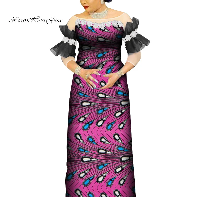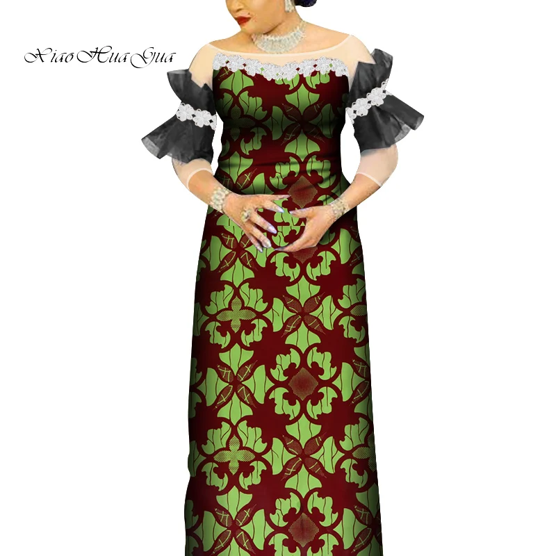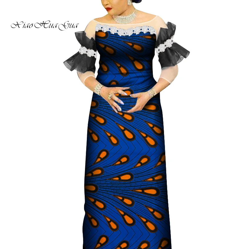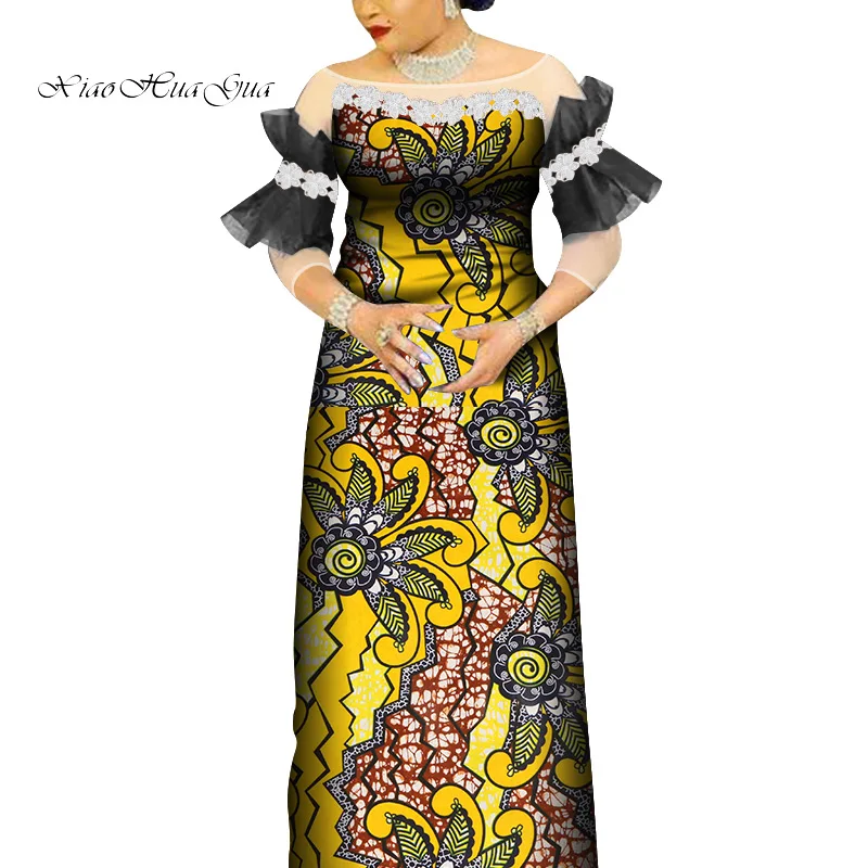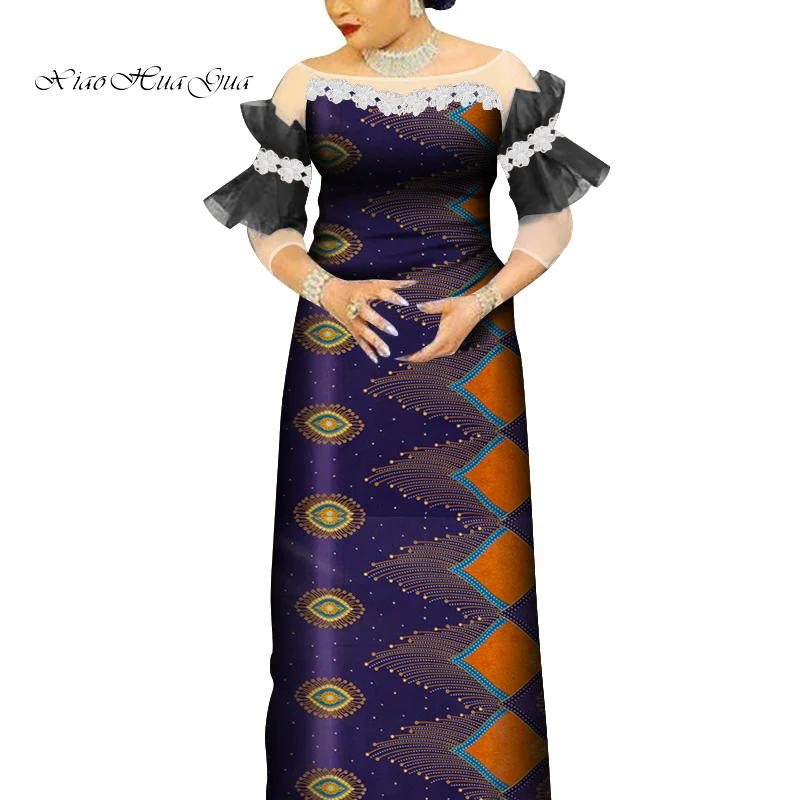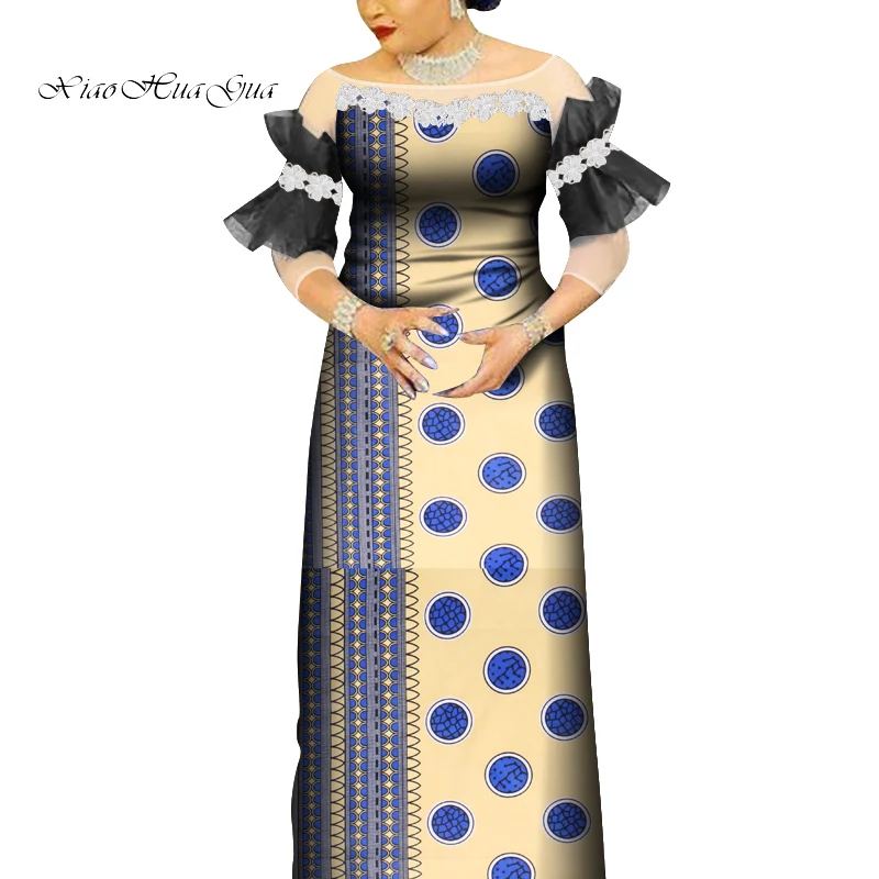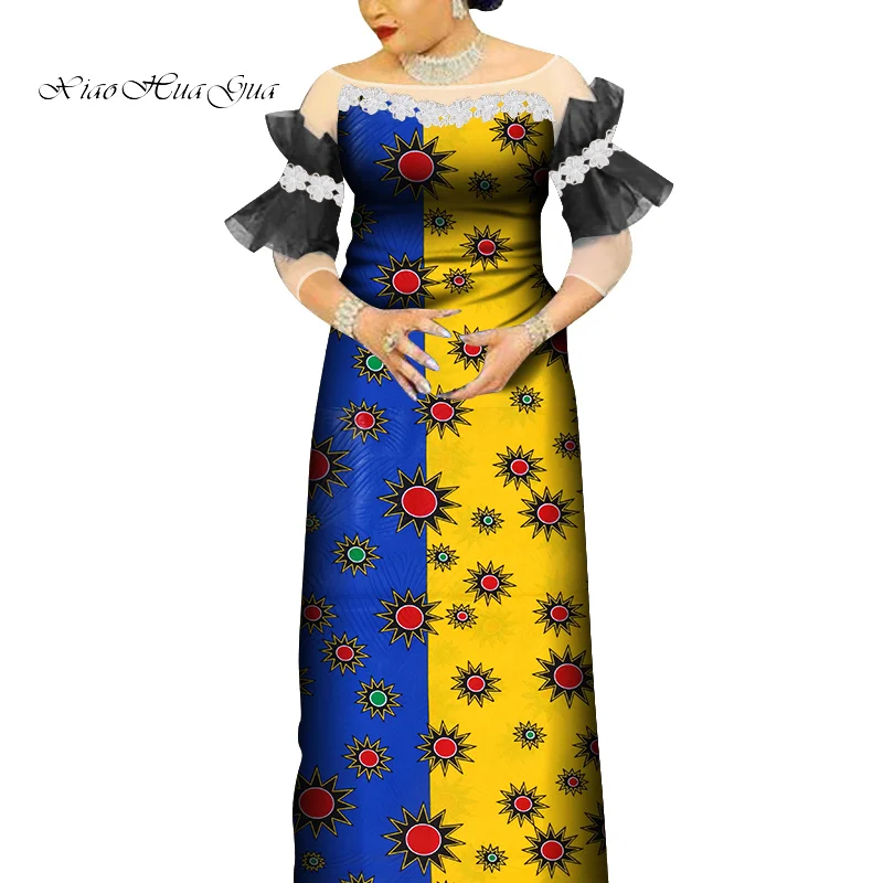 | 2020 Summer Ankara Long Dresses for Women African Wax Print Lace Robe Africaine Bazin Riche African Dresses for Women WY6730 |