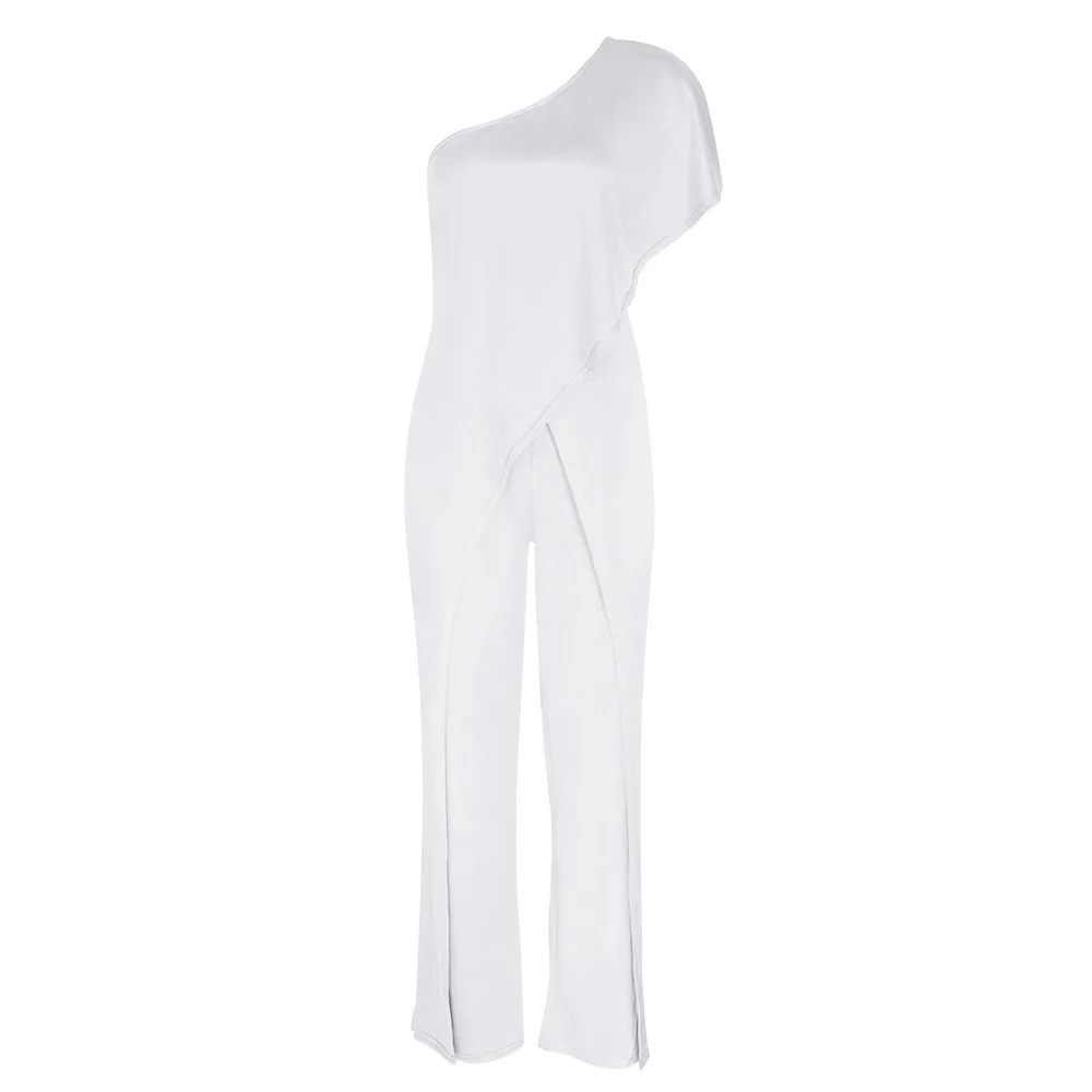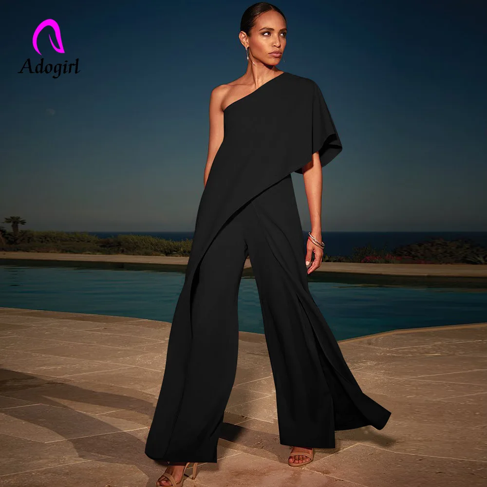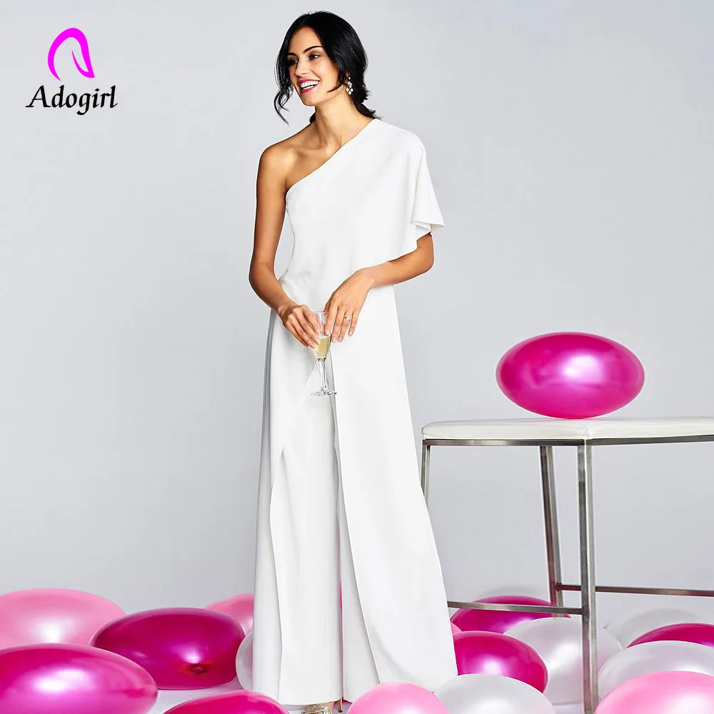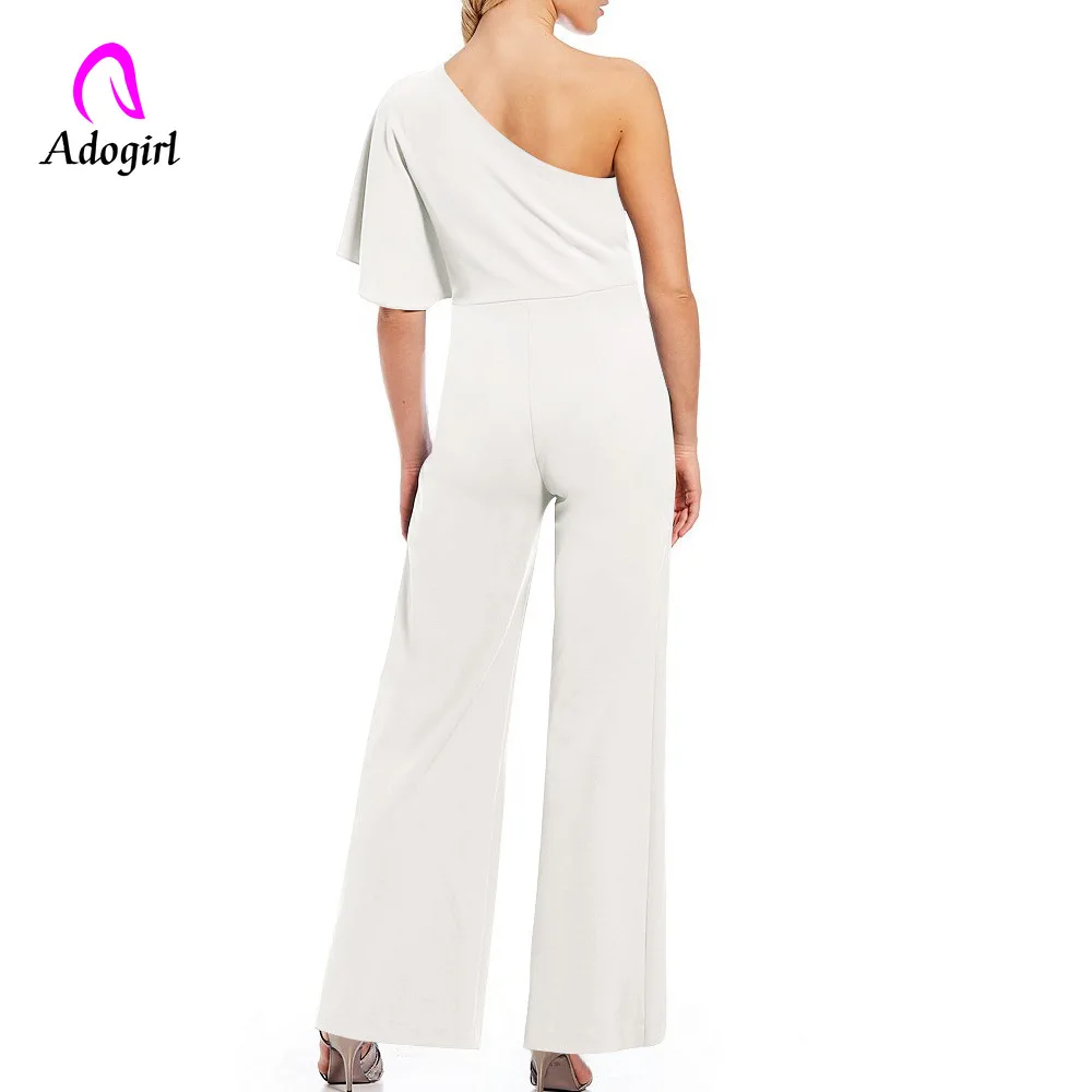 | Adogirl Sapphire Off Shoulder Rompers Womens White Jumpsuit Long Wide Leg Pants Slash Neck Solid Jumpsuit Elegant Party Jumpsuit |